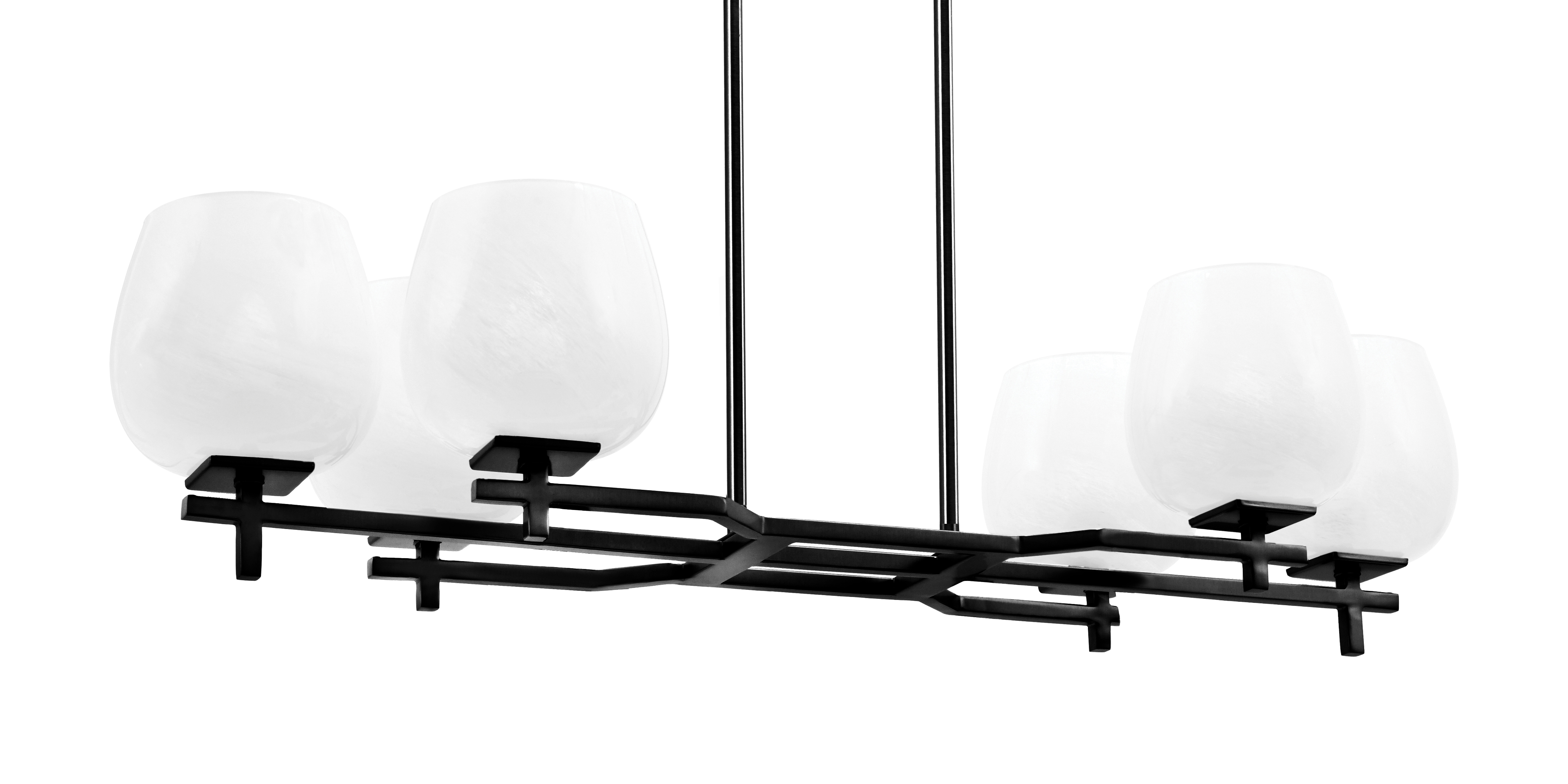 Toltec Lighting 2326-MB-3001 Corbin 6 Light Island Light, Matte Black Finish, 4" White Marble GlassIn Stock