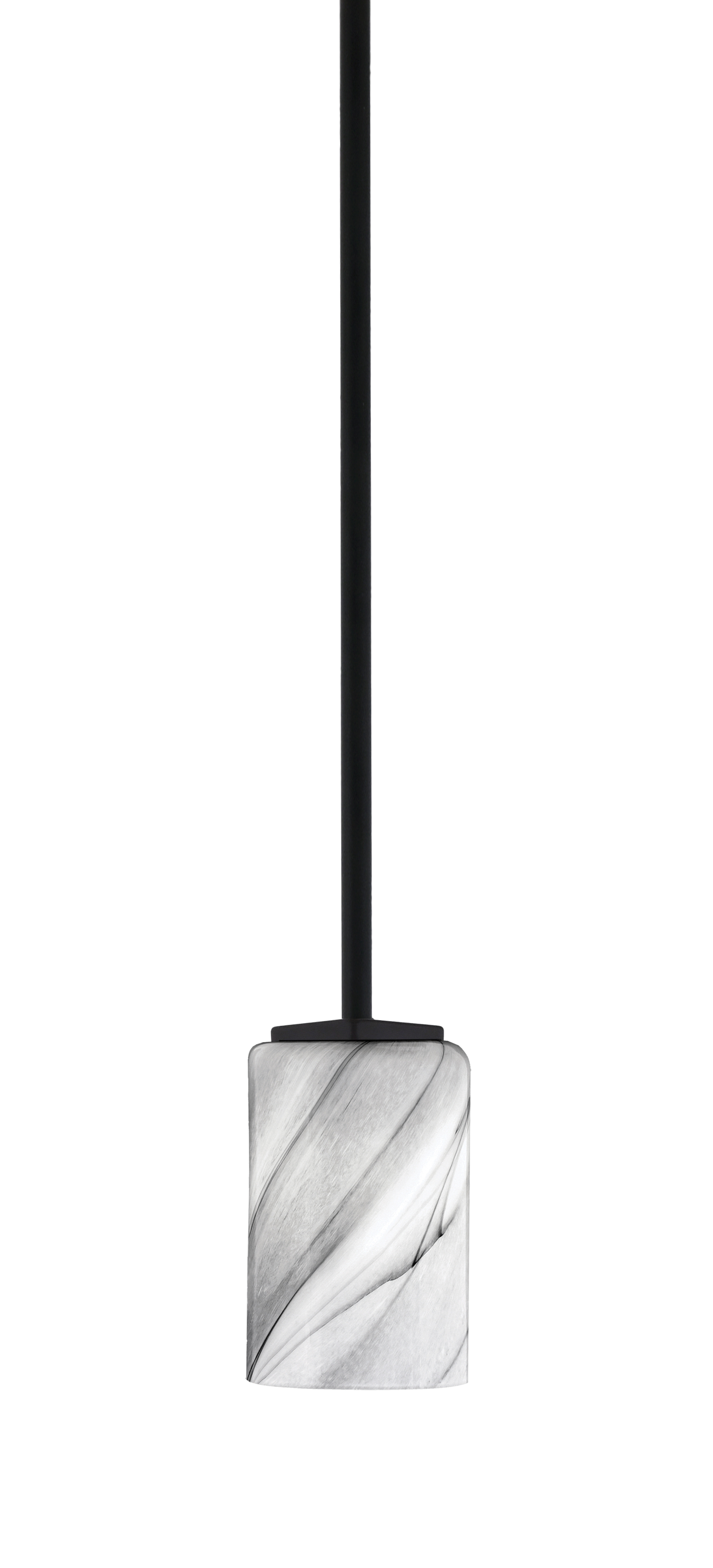 Toltec Lighting 1201-MB-3009 Franklin Stem Hung Mini Pendant, Matte Black Finish, 4" Onyx Swirl GlassIn Stock