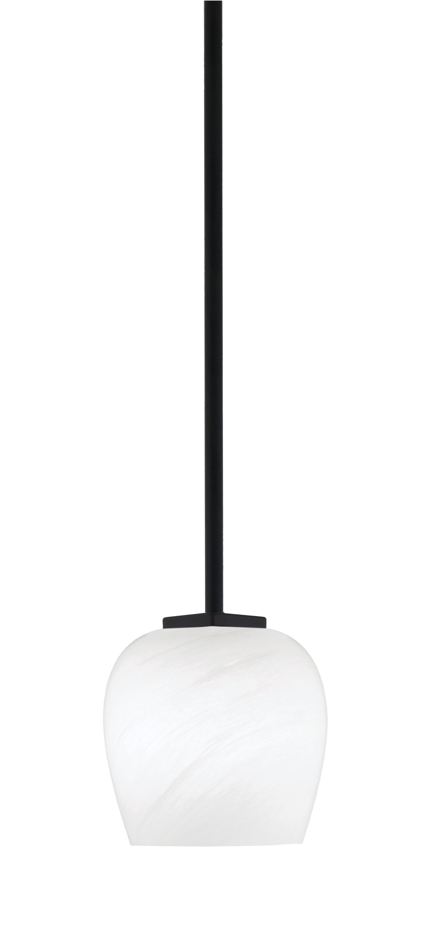 Toltec Lighting 1201-MB-4811 Franklin Stem Hung Mini Pendant, Matte Black Finish, 6" White Marble GlassIn Stock