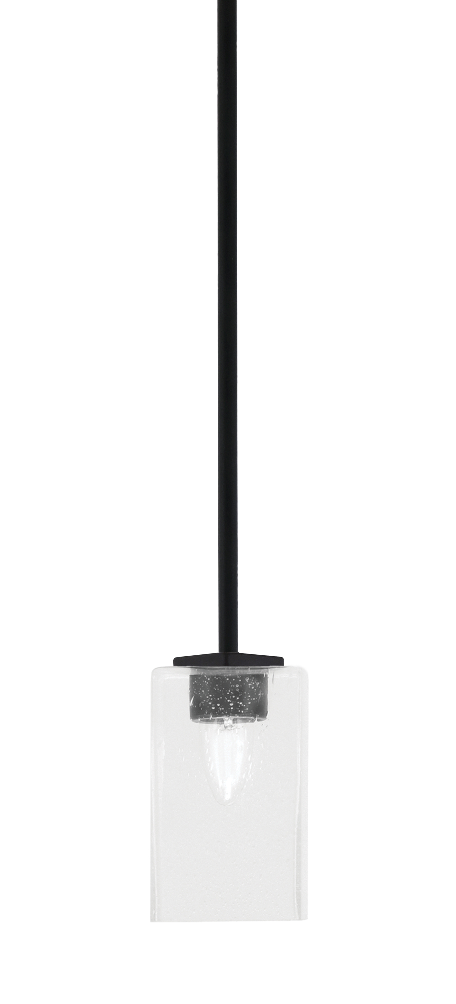 Toltec Lighting 1201-MB-530 Franklin Stem Hung Mini Pendant, Matte Black Finish, 4" Square Clear Bubble GlassIn Stock