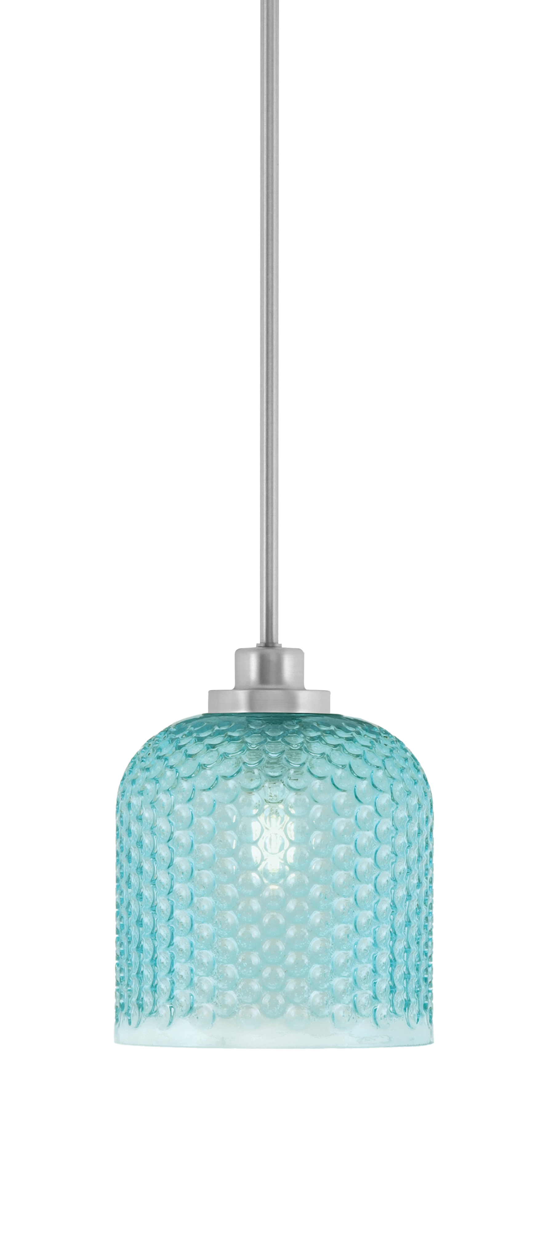 Toltec Lighting 2601-BN-4625 Odyssey Stem Hung Mini Pendant, Brushed Nickel Finish, 6" Turquoise Textured GlassIn Stock