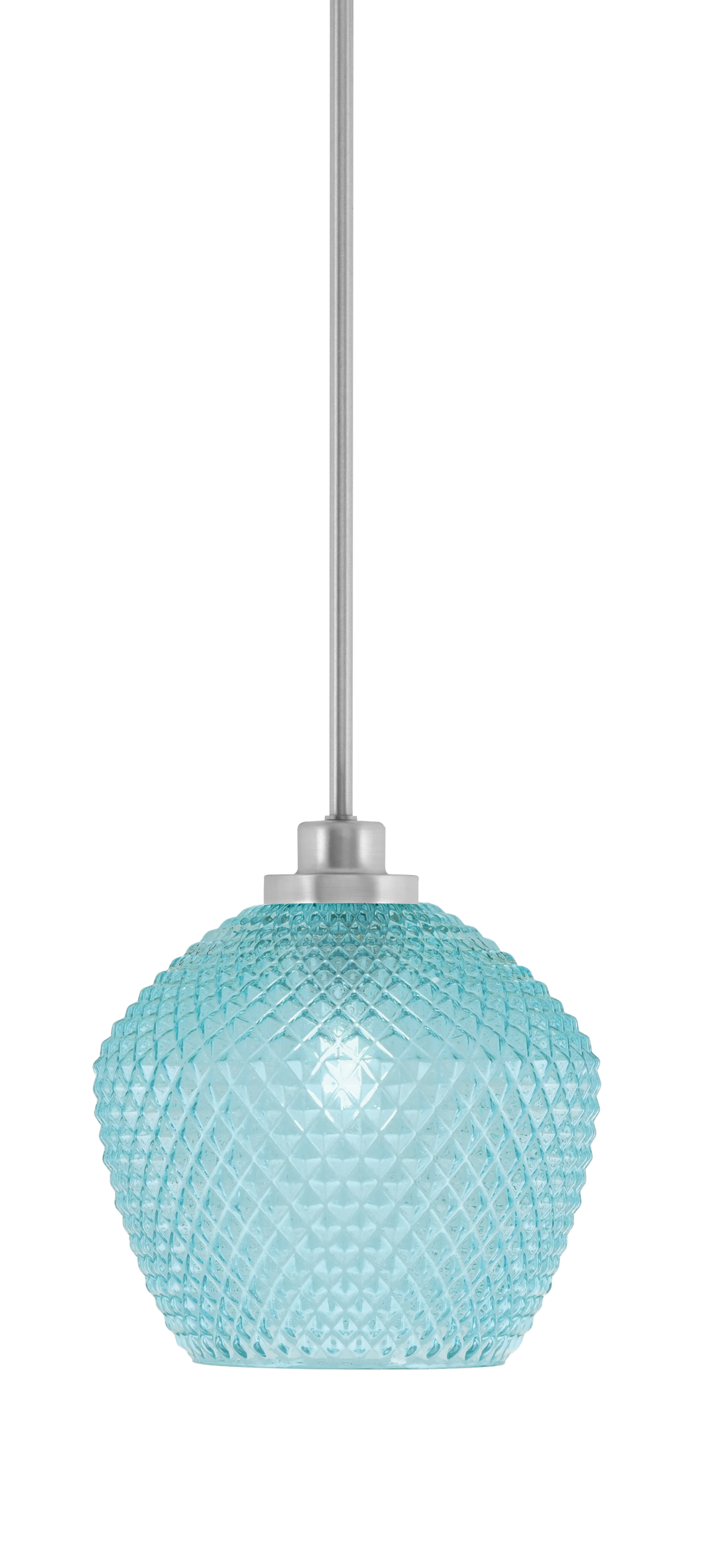Toltec Lighting 2601-BN-4925 Odyssey Stem Hung Mini Pendant, Brushed Nickel Finish, 9" Turquoise Textured GlassIn Stock