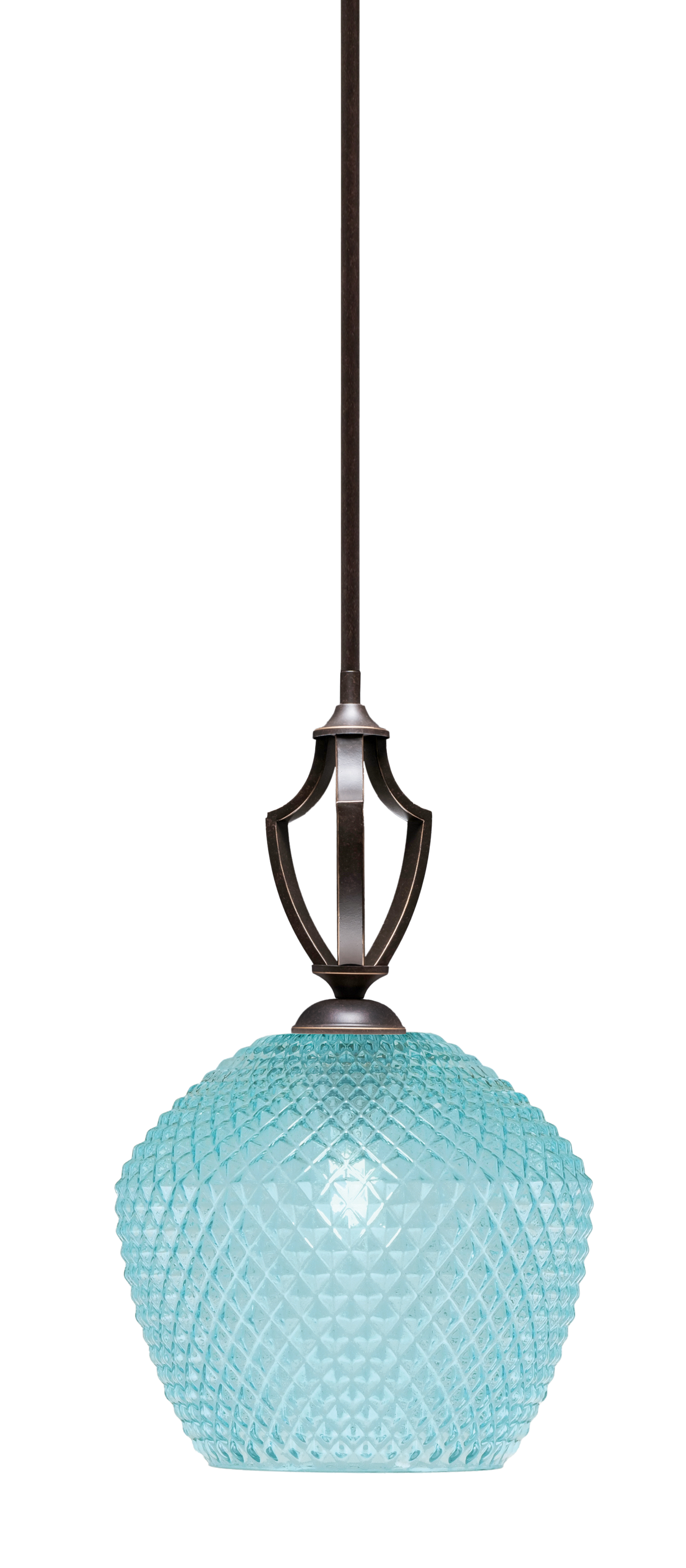 Toltec Lighting 561-DG-4925 Zilo Stem Hung Mini Pendant, Dark Granite Finish, 9" Turquoise Textured GlassIn Stock