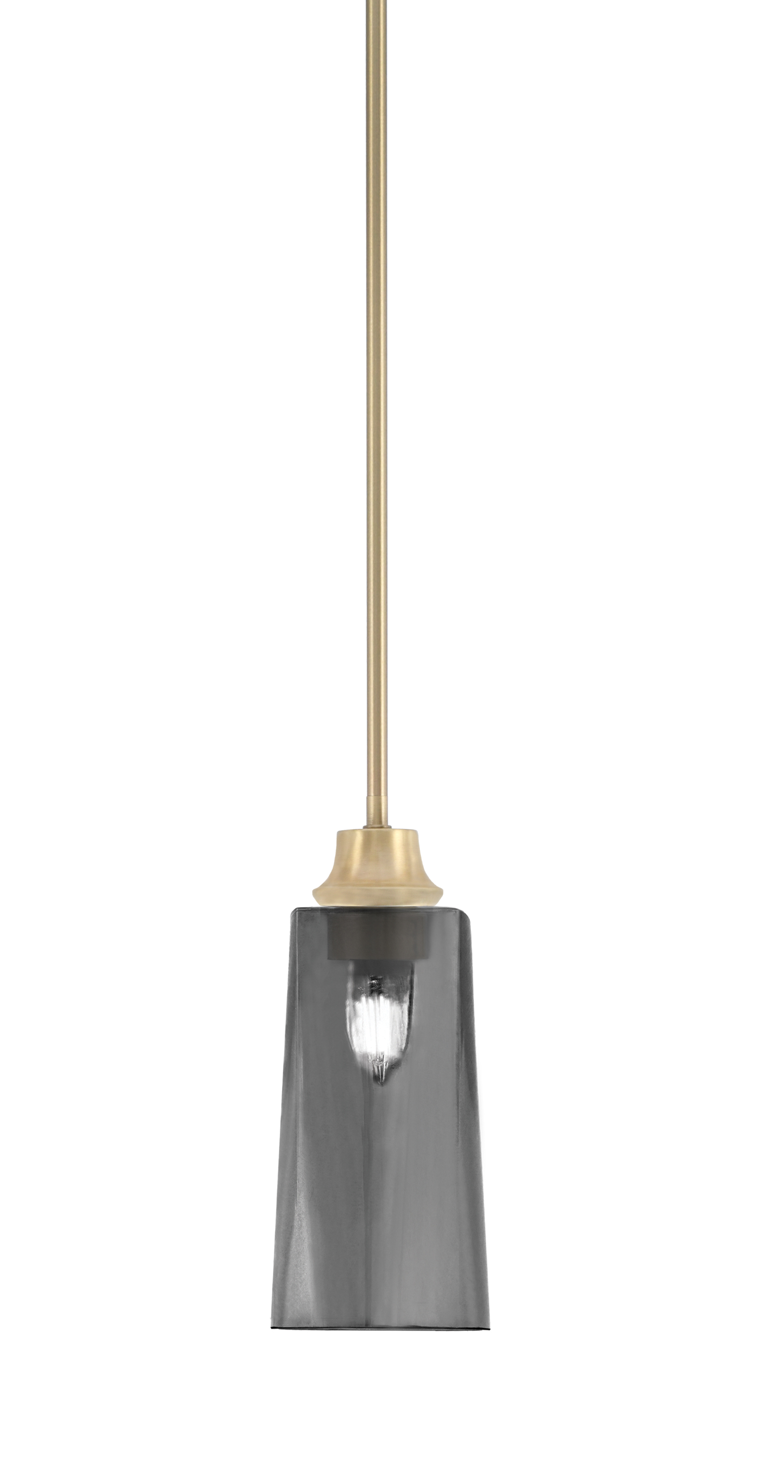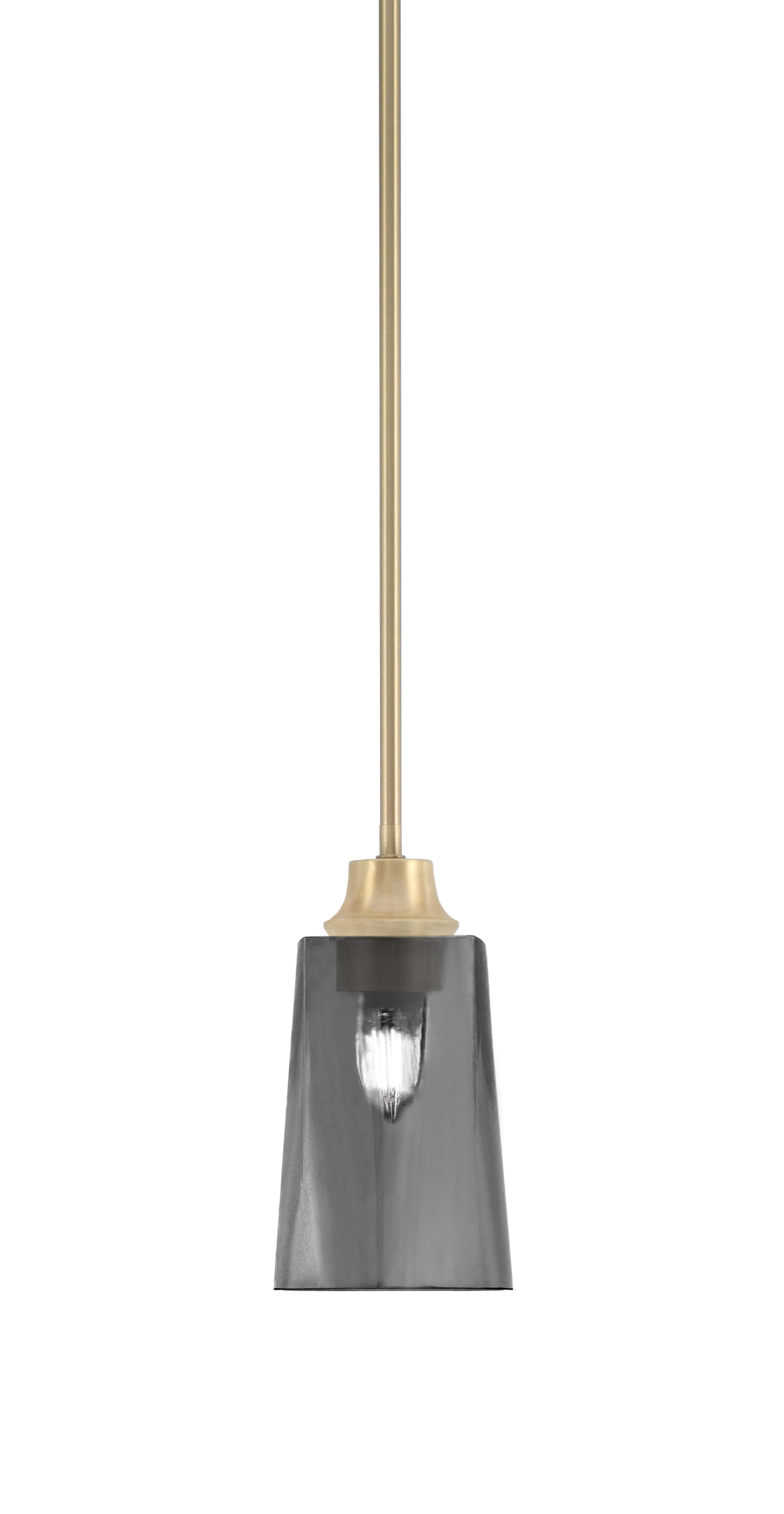Toltec Lighting 23-NAB-542 Stem Hung Mini Pendant, New Age Brass Finish, 3.5" Square Smoke Bubble GlassIn Stock