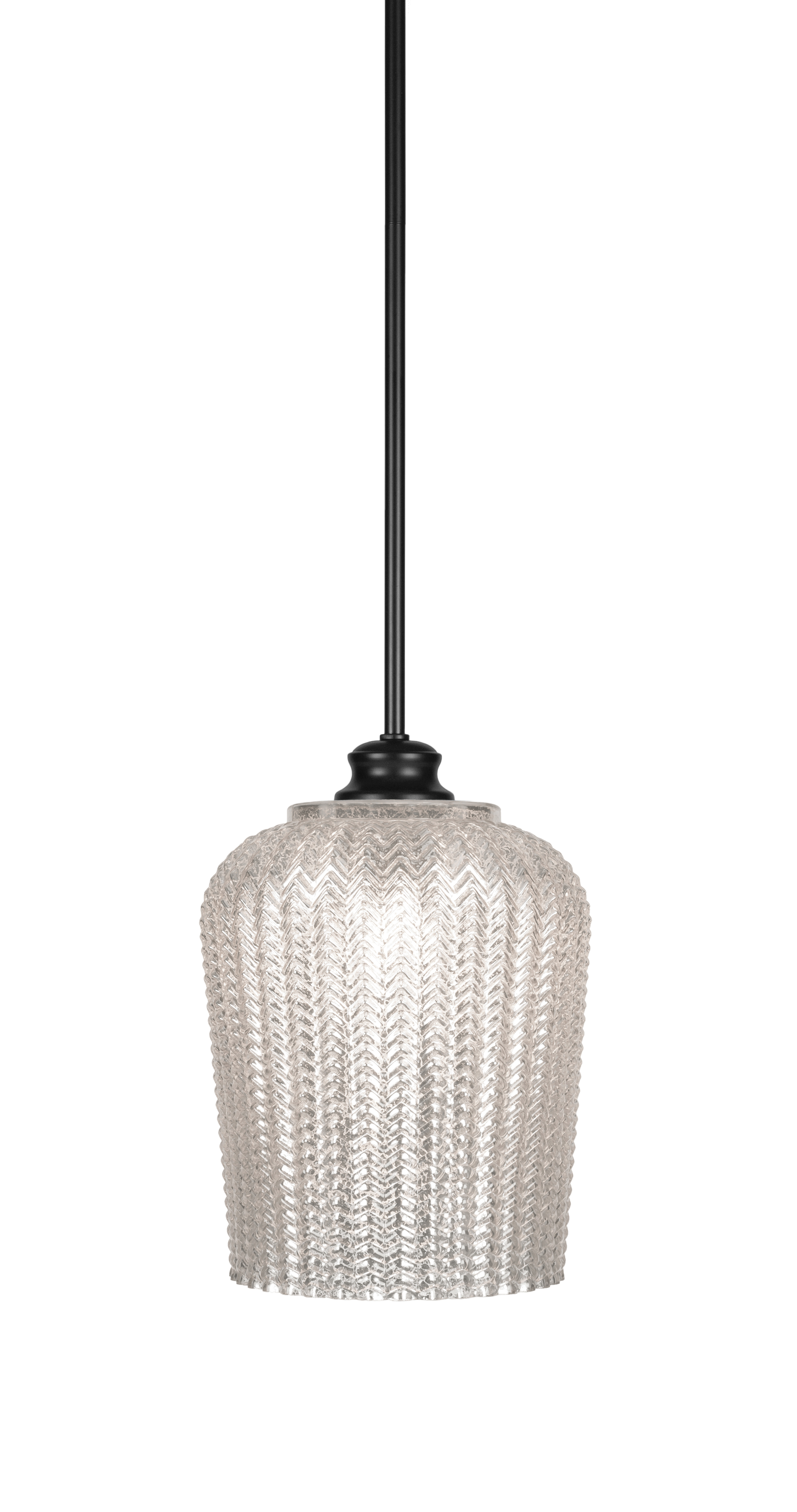 Toltec Lighting 72-MB-4250 Cordova Stem Hung Pendant, Matte Black Finish, 5" Clear Textured GlassIn Stock