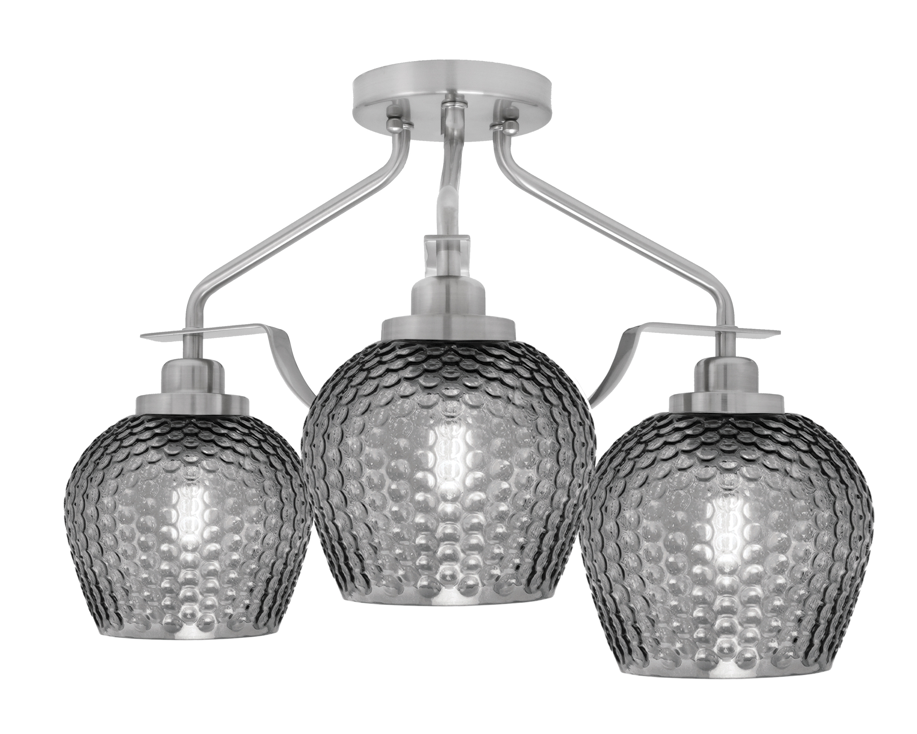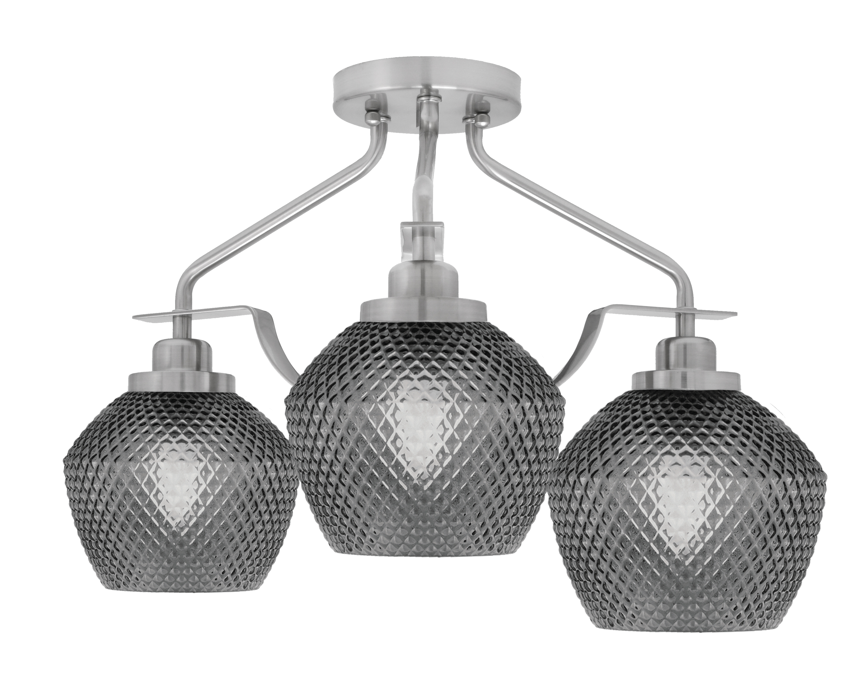 Toltec Lighting 2607-BN-4622 Odyssey 3 Light Semi-Flush, Brushed Nickel Finish, 6" Smoke Textured GlassIn Stock