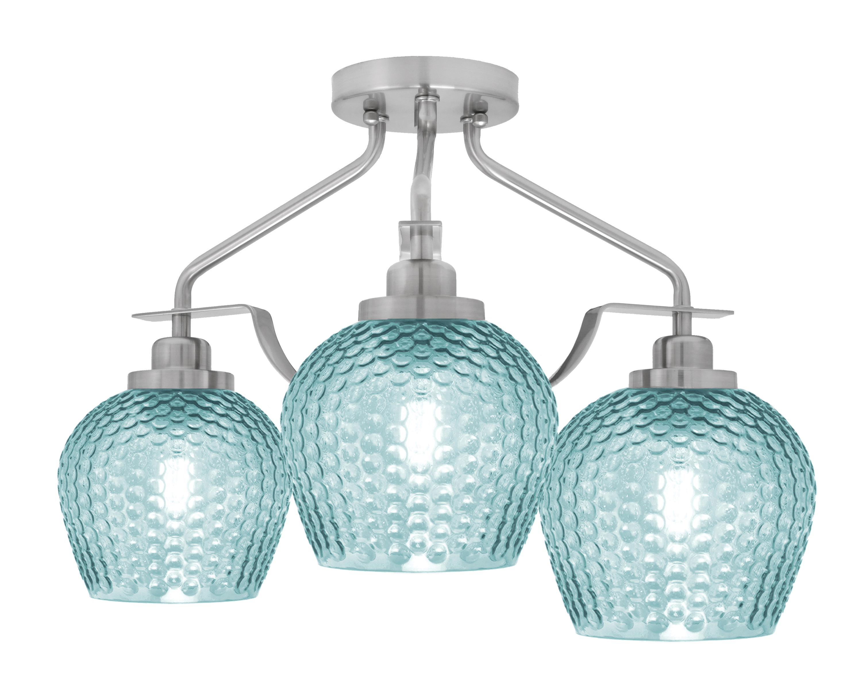Toltec Lighting 2607-BN-4615 Odyssey 3 Light Semi-Flush, Brushed Nickel Finish, 6" Turquoise Textured GlassIn Stock