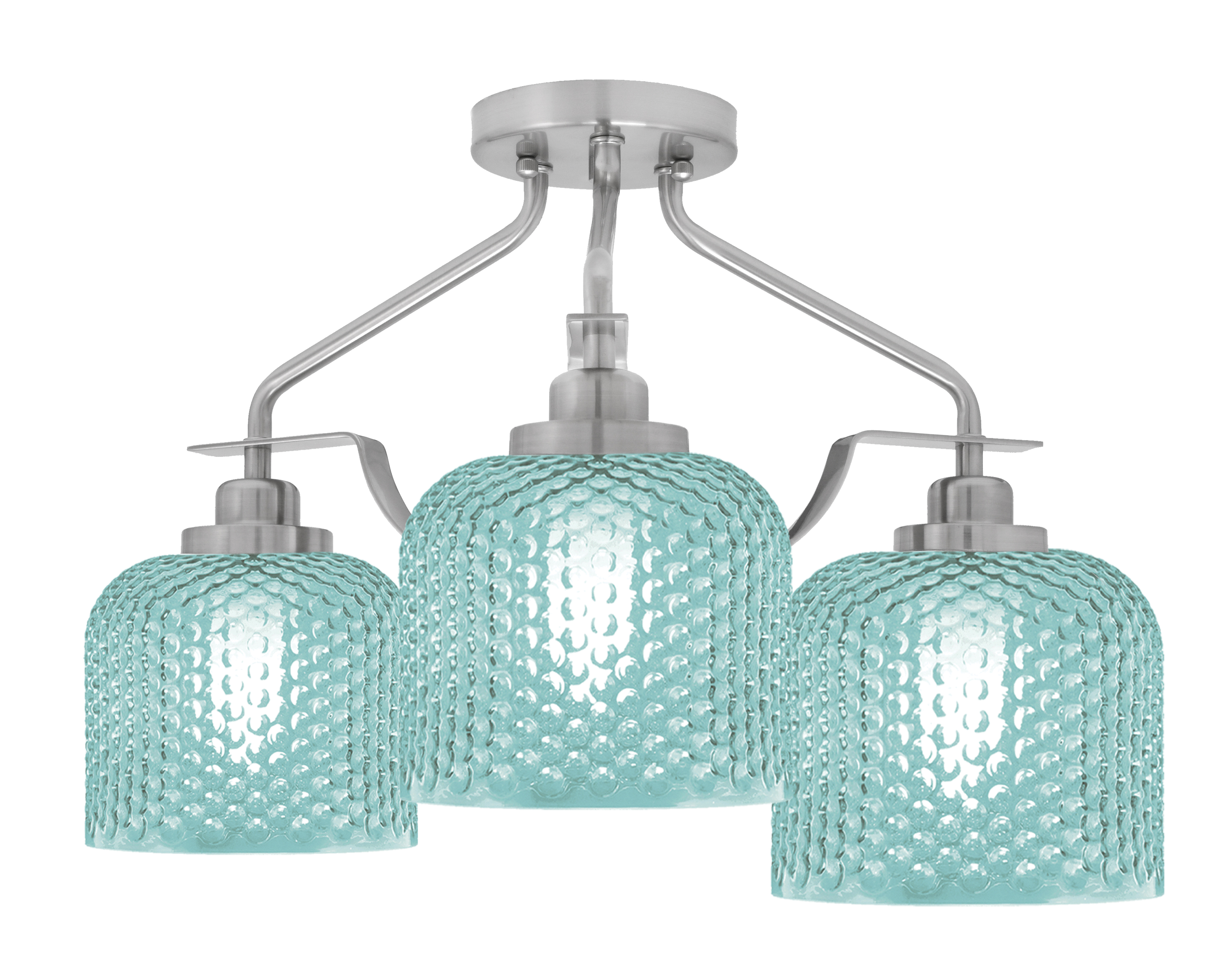 Toltec Lighting 2607-BN-4605 Odyssey 3 Light Semi-Flush, Brushed Nickel Finish, 6" Turquoise Textured GlassIn Stock