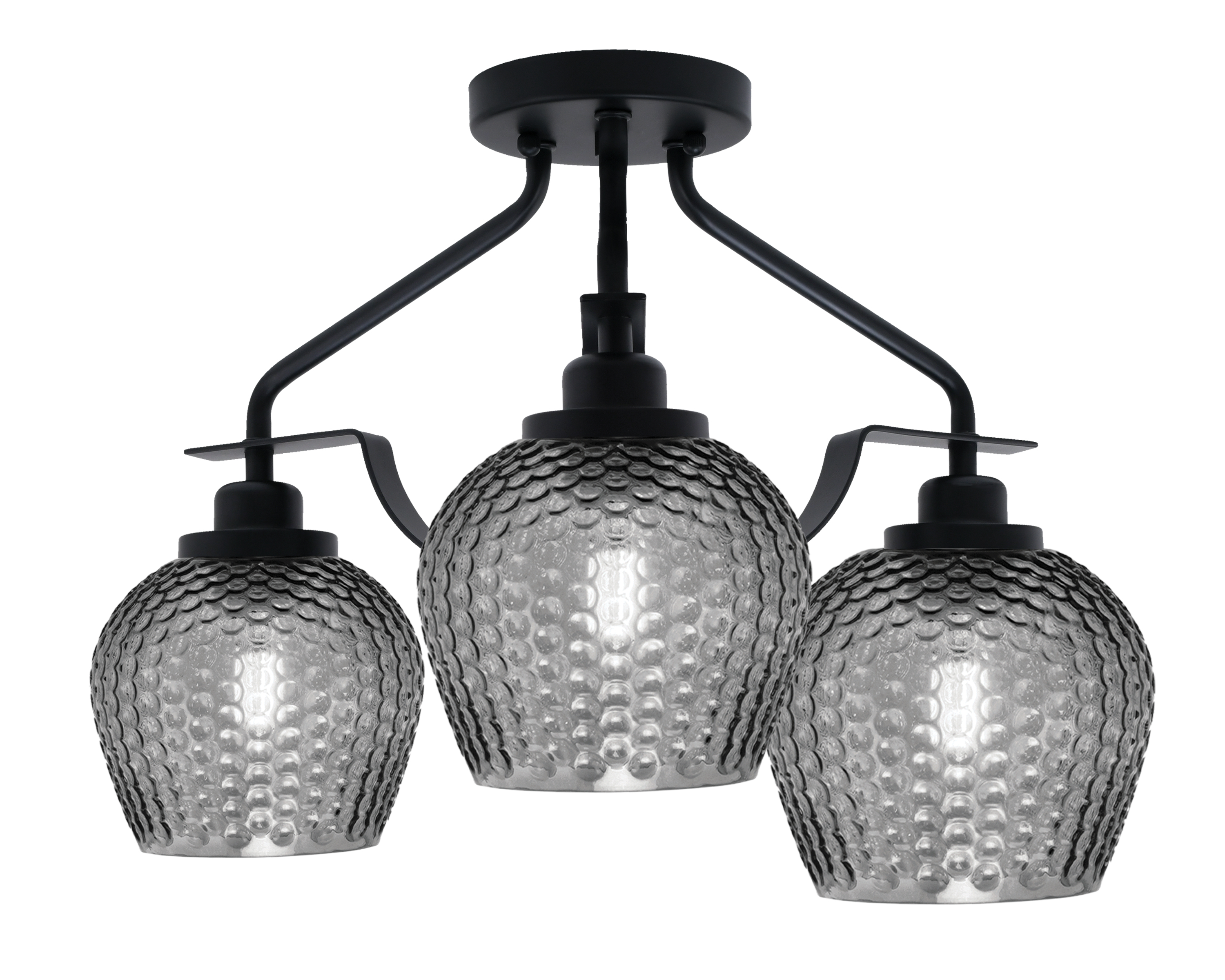 Toltec Lighting 2607-MB-4252 Odyssey 3 Light Semi-Flush, Matte Black Finish, 5" Smoke Textured GlassIn Stock