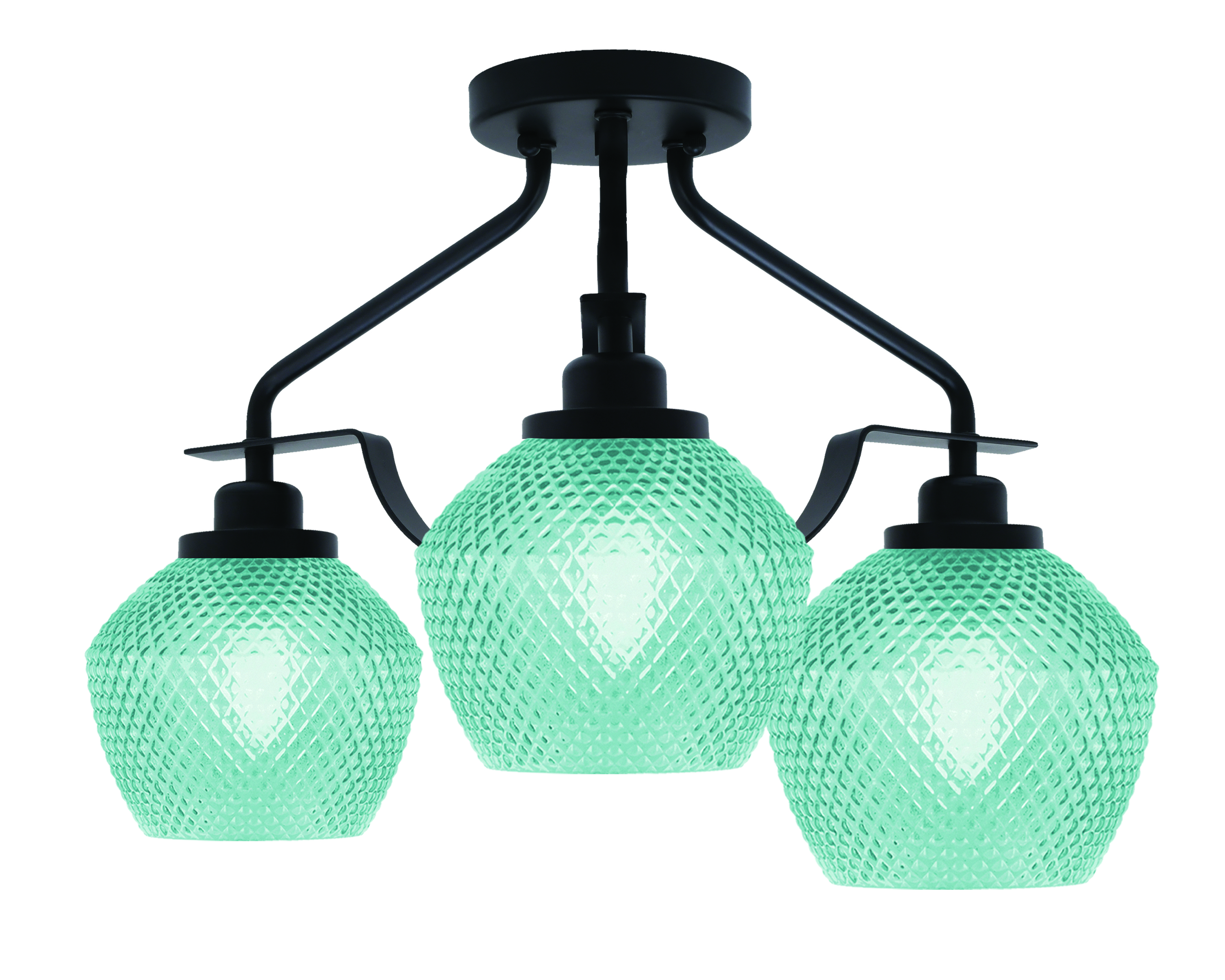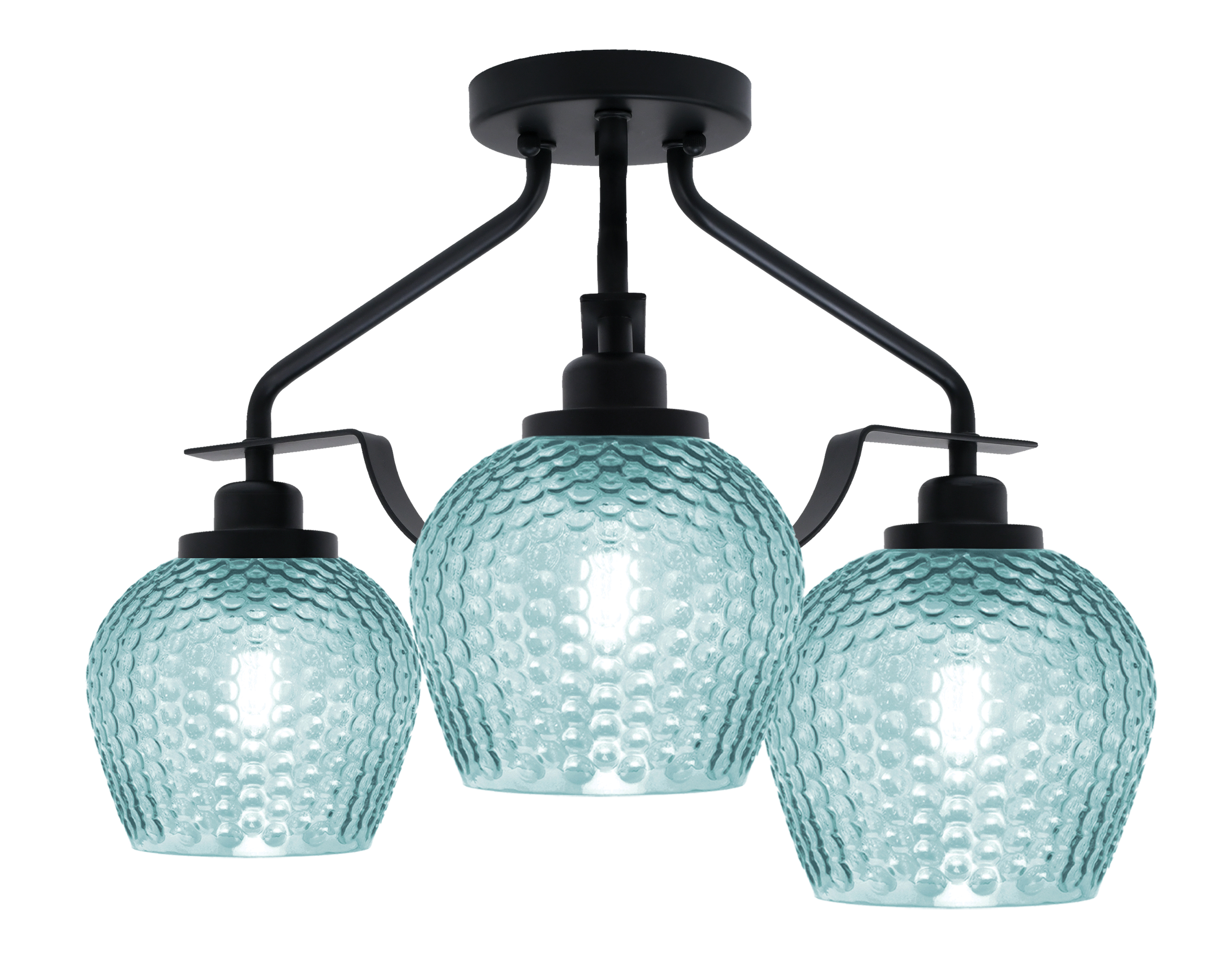 Toltec Lighting 2607-MB-4625 Odyssey 3 Light Semi-Flush, Matte Black Finish, 6" Turquoise Textured GlassIn Stock