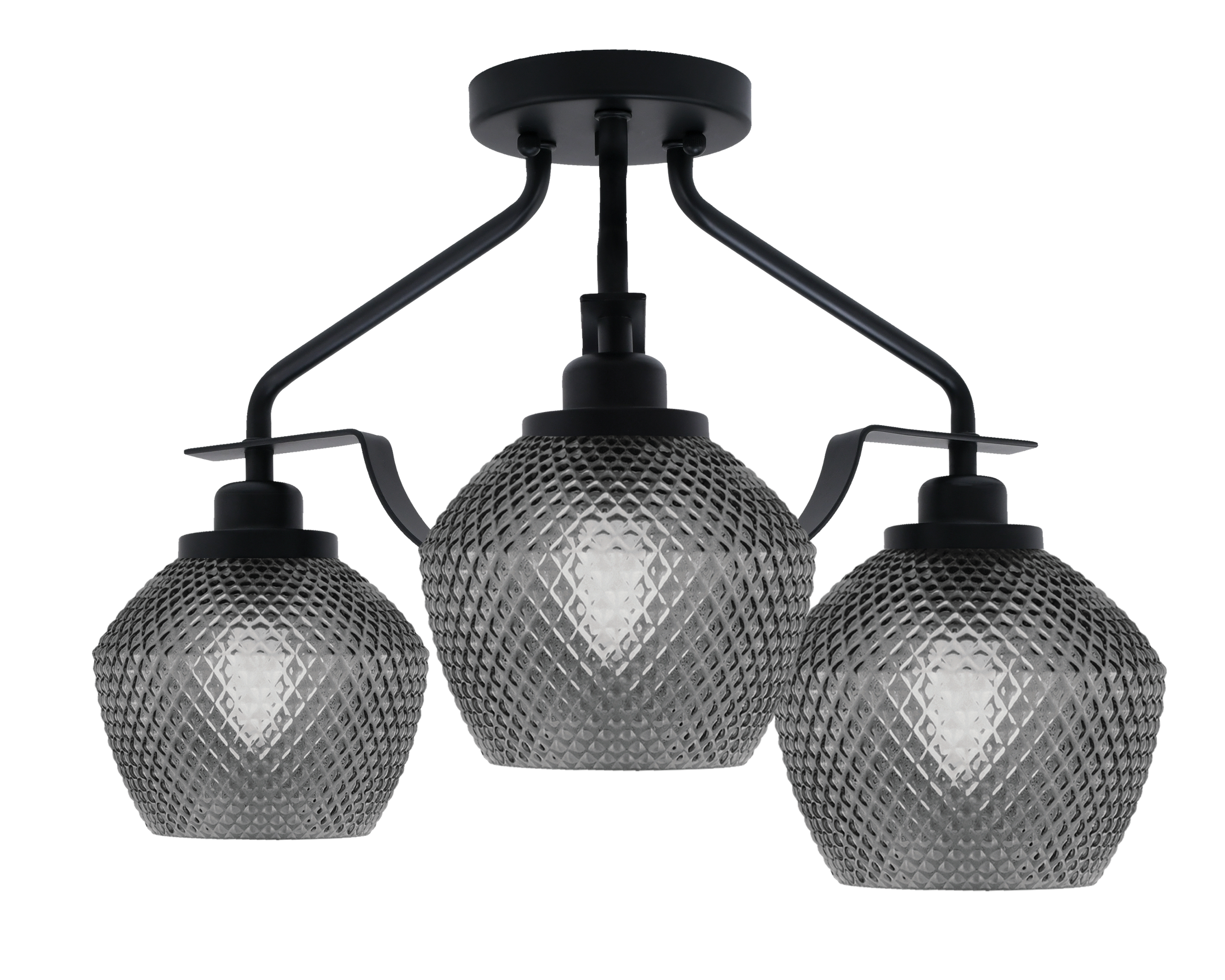 Toltec Lighting 2607-MB-4622 Odyssey 3 Light Semi-Flush, Matte Black Finish, 6" Smoke Textured GlassIn Stock