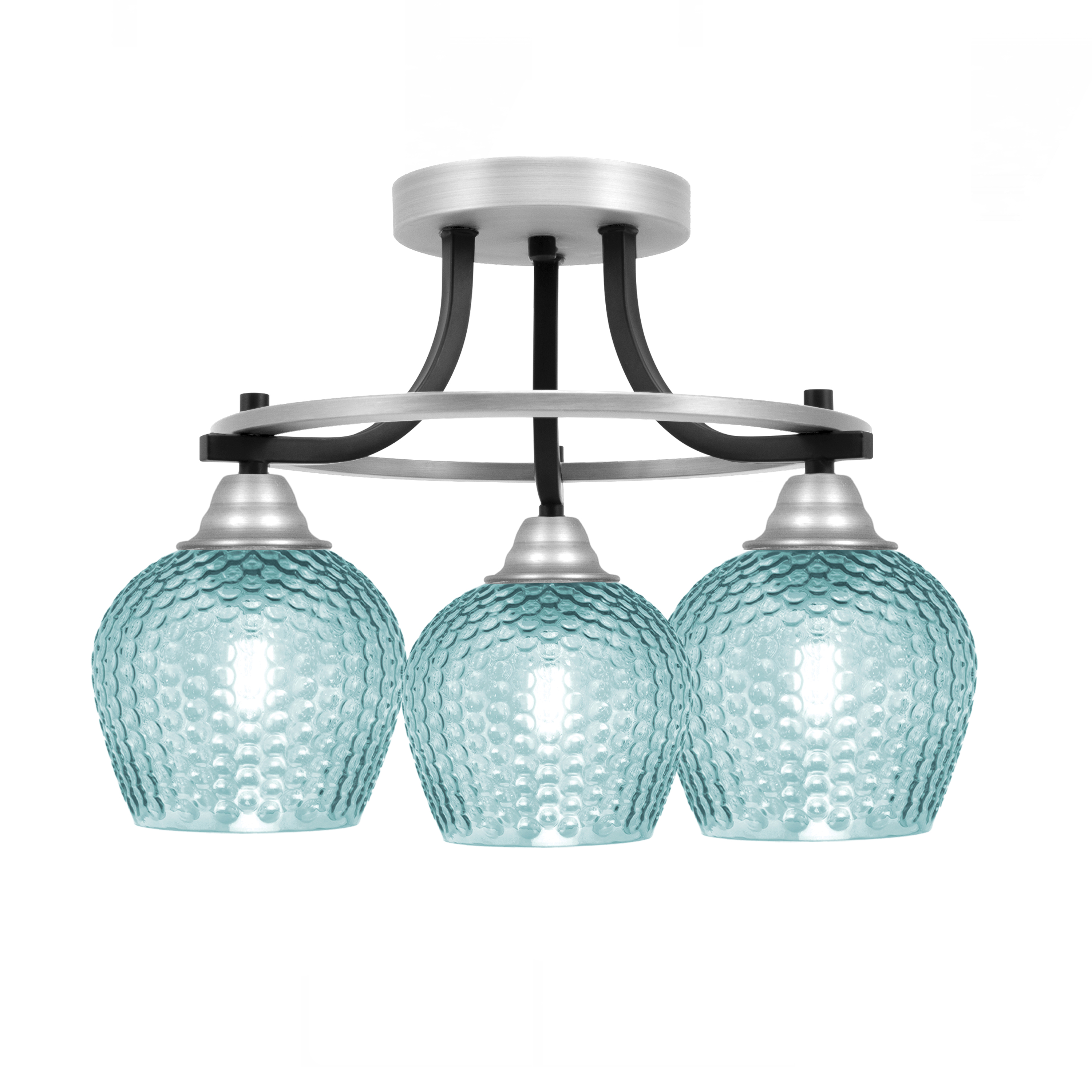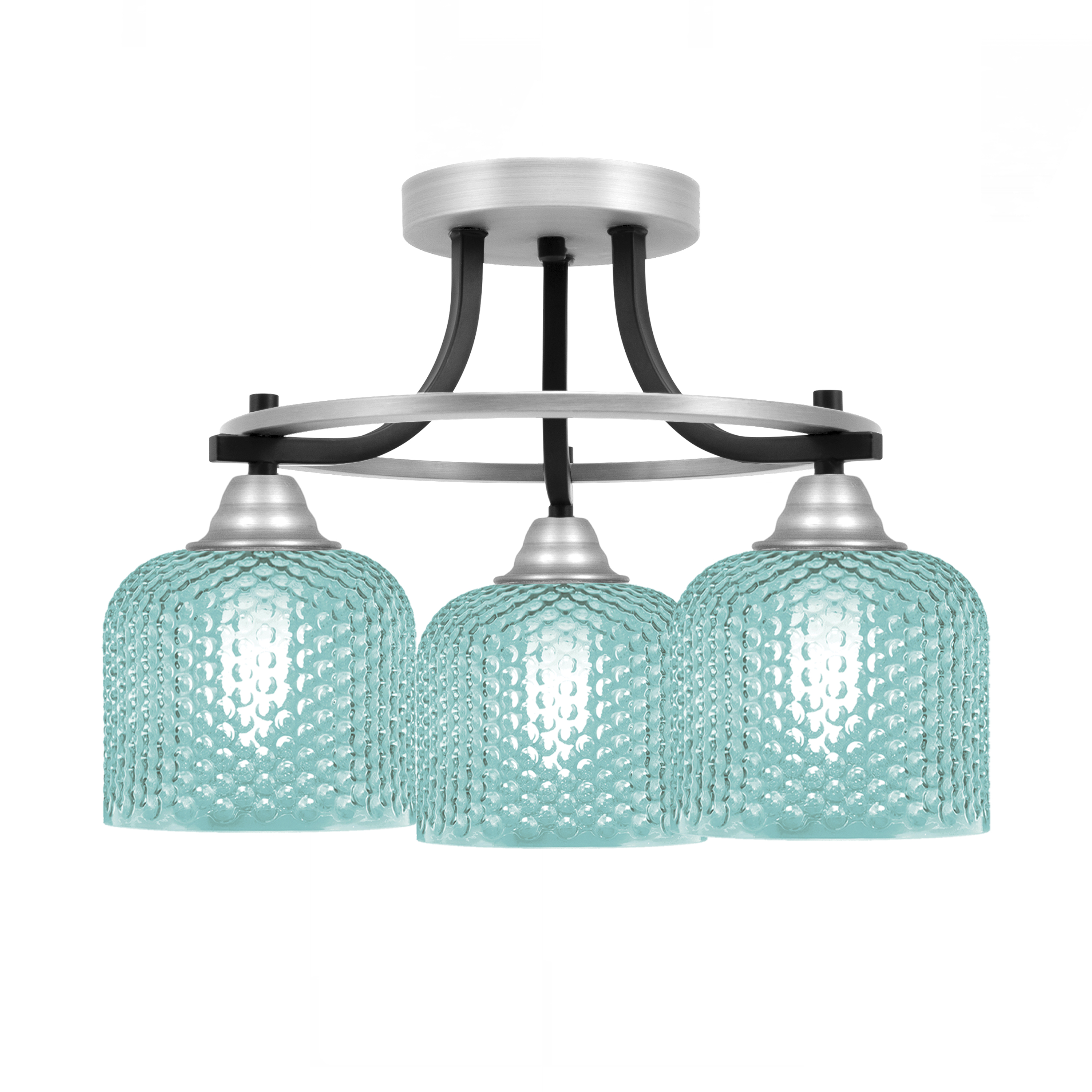 Toltec Lighting 3417-MBBN-4625 Paramount 3 Light Semi Flush, Matte Black & Brushed Nickel Finish, 6" Turquoise Textured GlassIn Stock