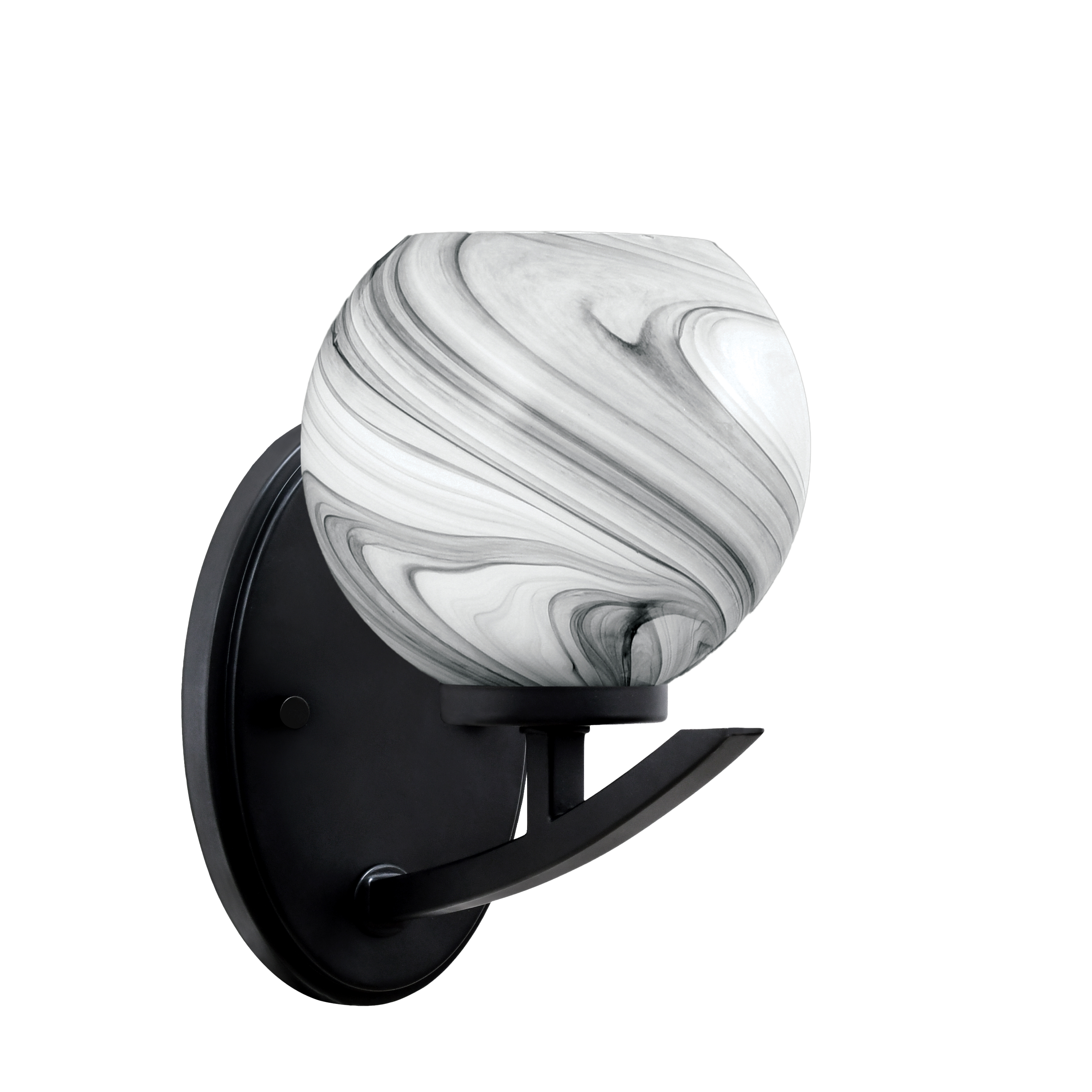 Toltec Lighting 3721-MB-4109 Kurve Uplight Wall Sconce, Matte Black Finish, 5.75" Onyx Swirl GlassIn Stock