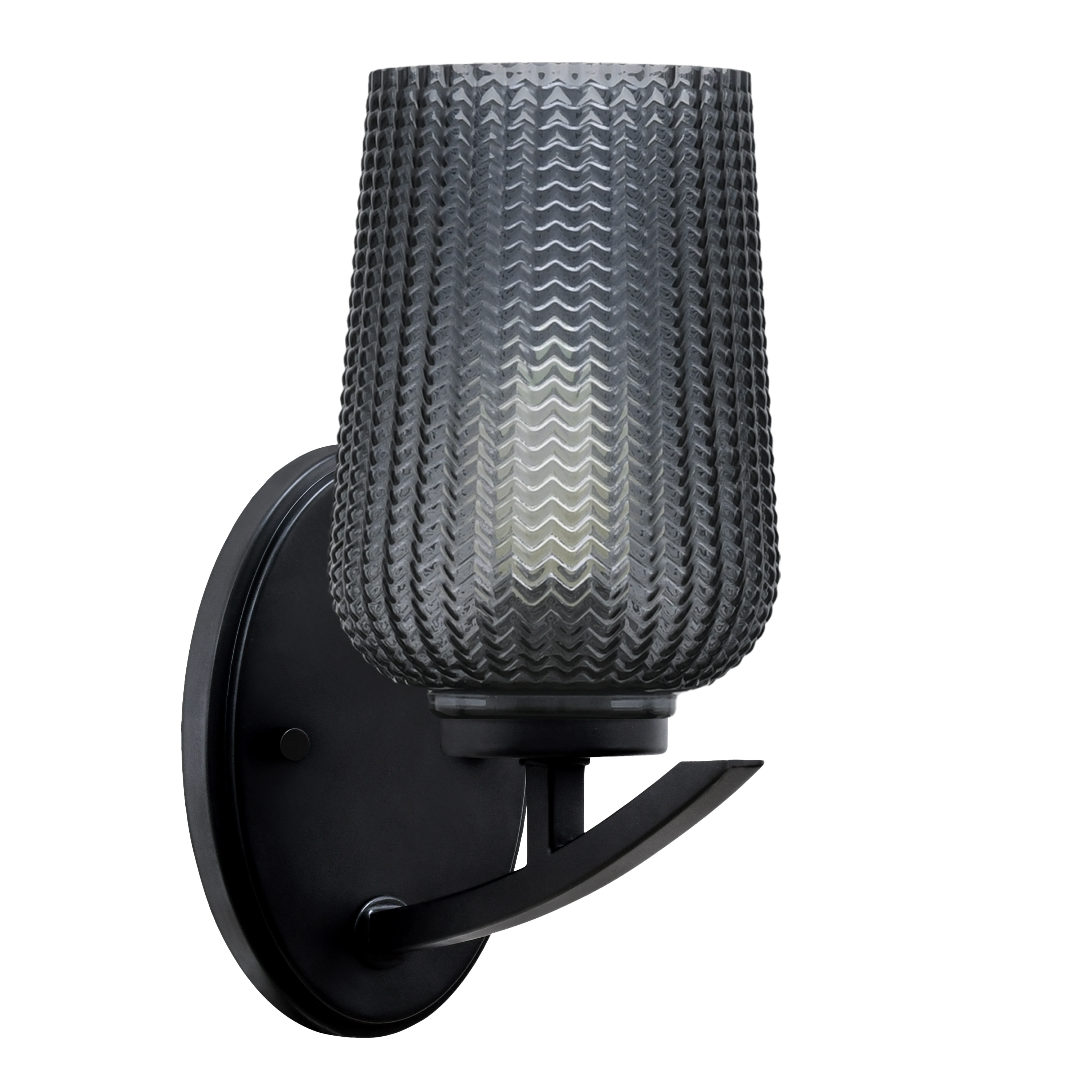 Toltec Lighting 3720-MB-5112 Kurve Downlight Wall Sconce, Matte Black Finish, 6" Smoke Ribbed GlassIn Stock