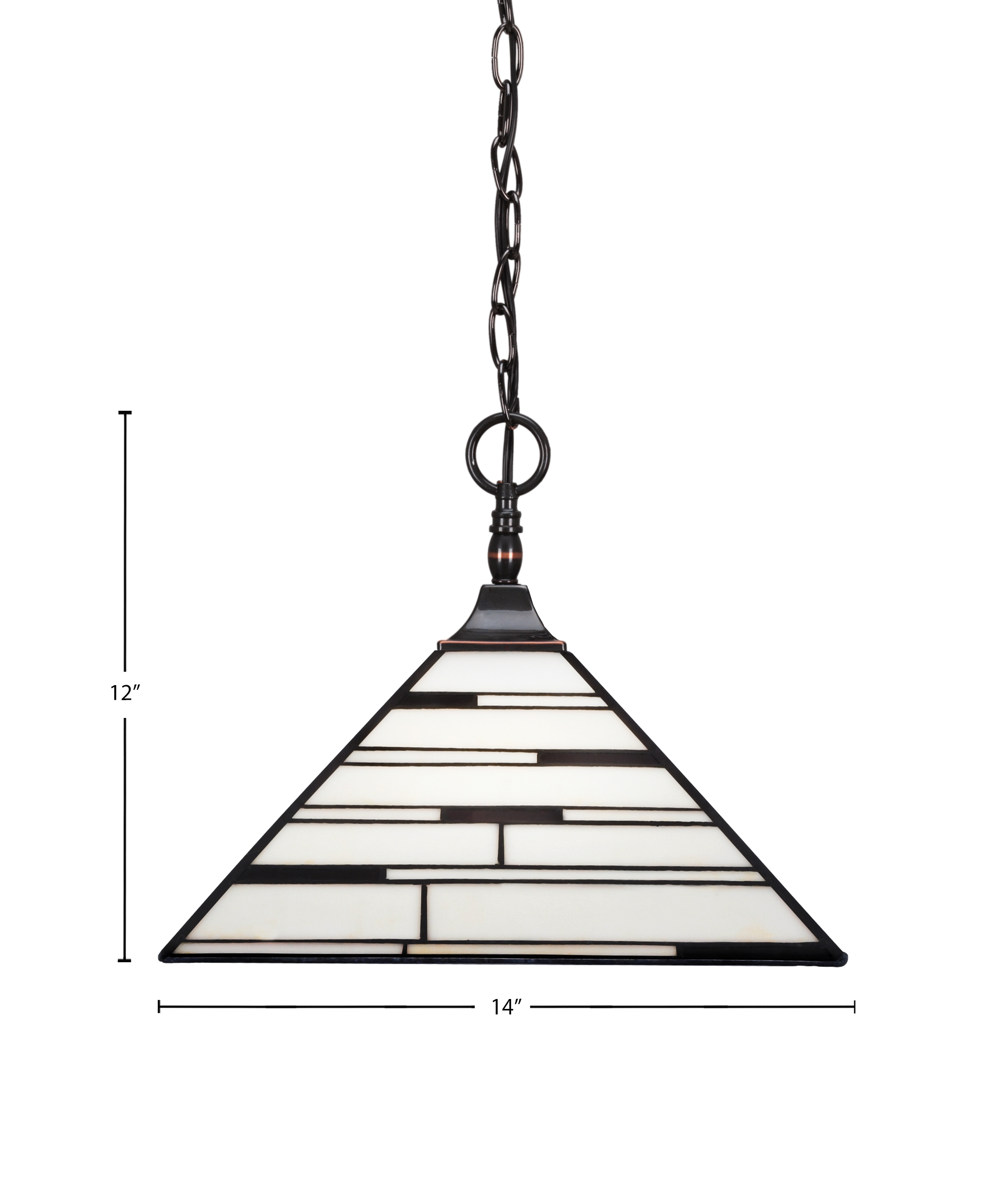 Toltec Lighting 12-BC-952 Chain Hung Pendant, Square Fitter, Black Copper Finish, 14″ Pearl Ebony Art Glass