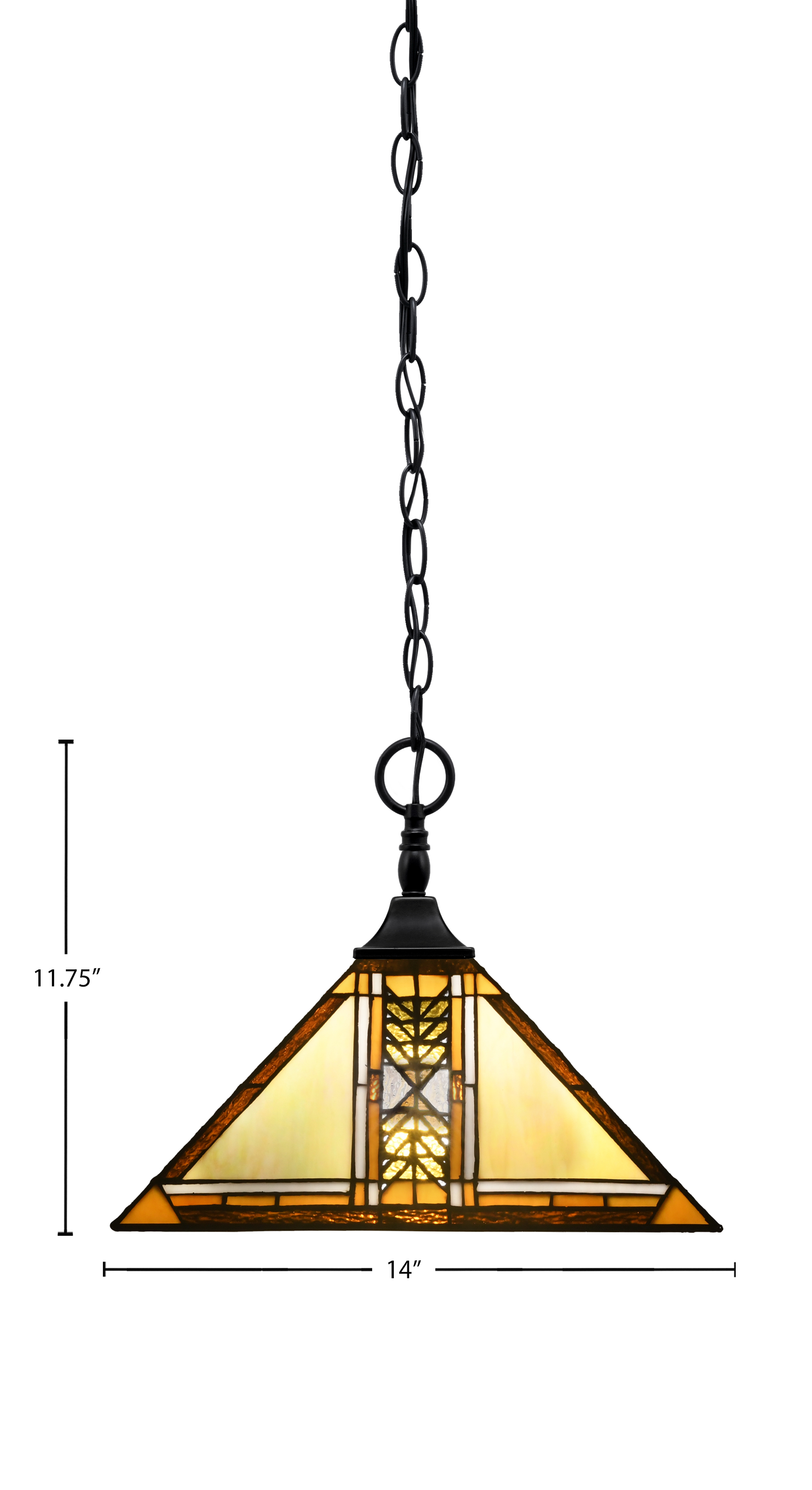 Toltec Lighting 12-MB-986 Chain Hung Pendant, Square Fitter, Matte Black Finish, 14″ Santa Cruz Art Glass