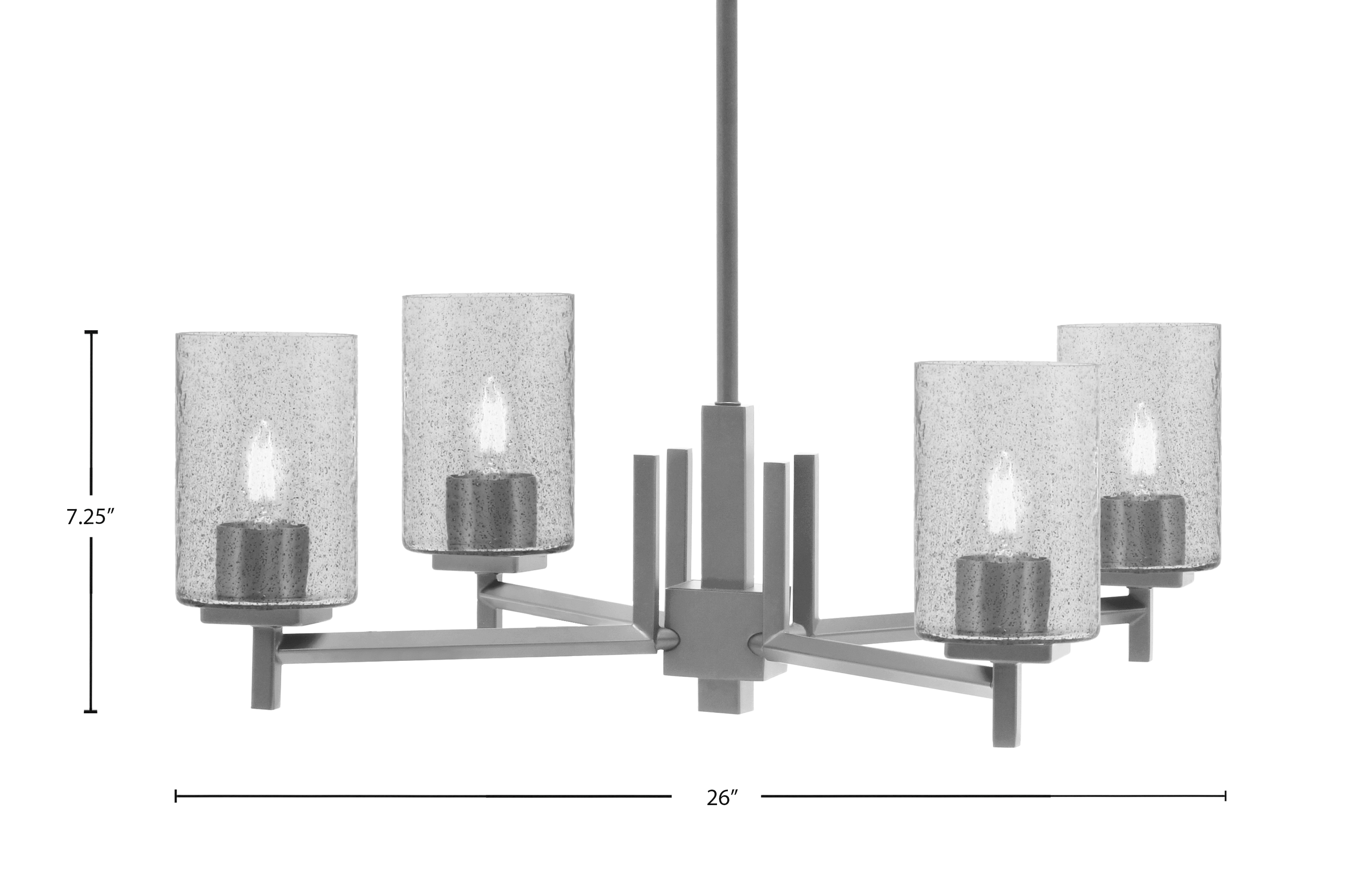 Add a touch of industrial sophistication to your space with the Franklin 4-Light Chandelier. Featuring four 4″ smoke bubble glass shades, this chandelier creates a soft, ambient glow with a unique textured effect. The sleek graphite finish provides a contemporary edge, making it the perfect fixture for dining rooms, kitchens, or living areas.