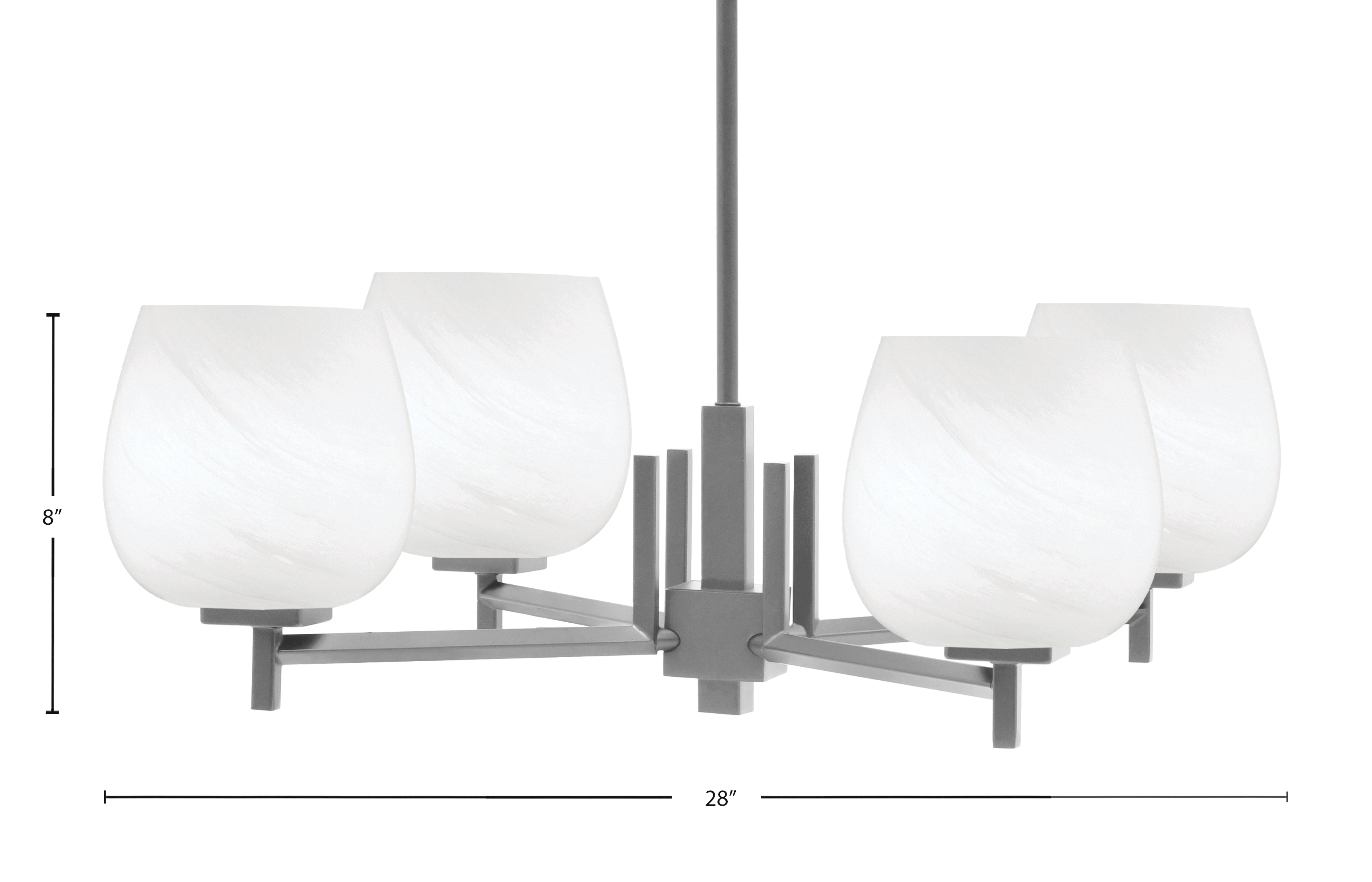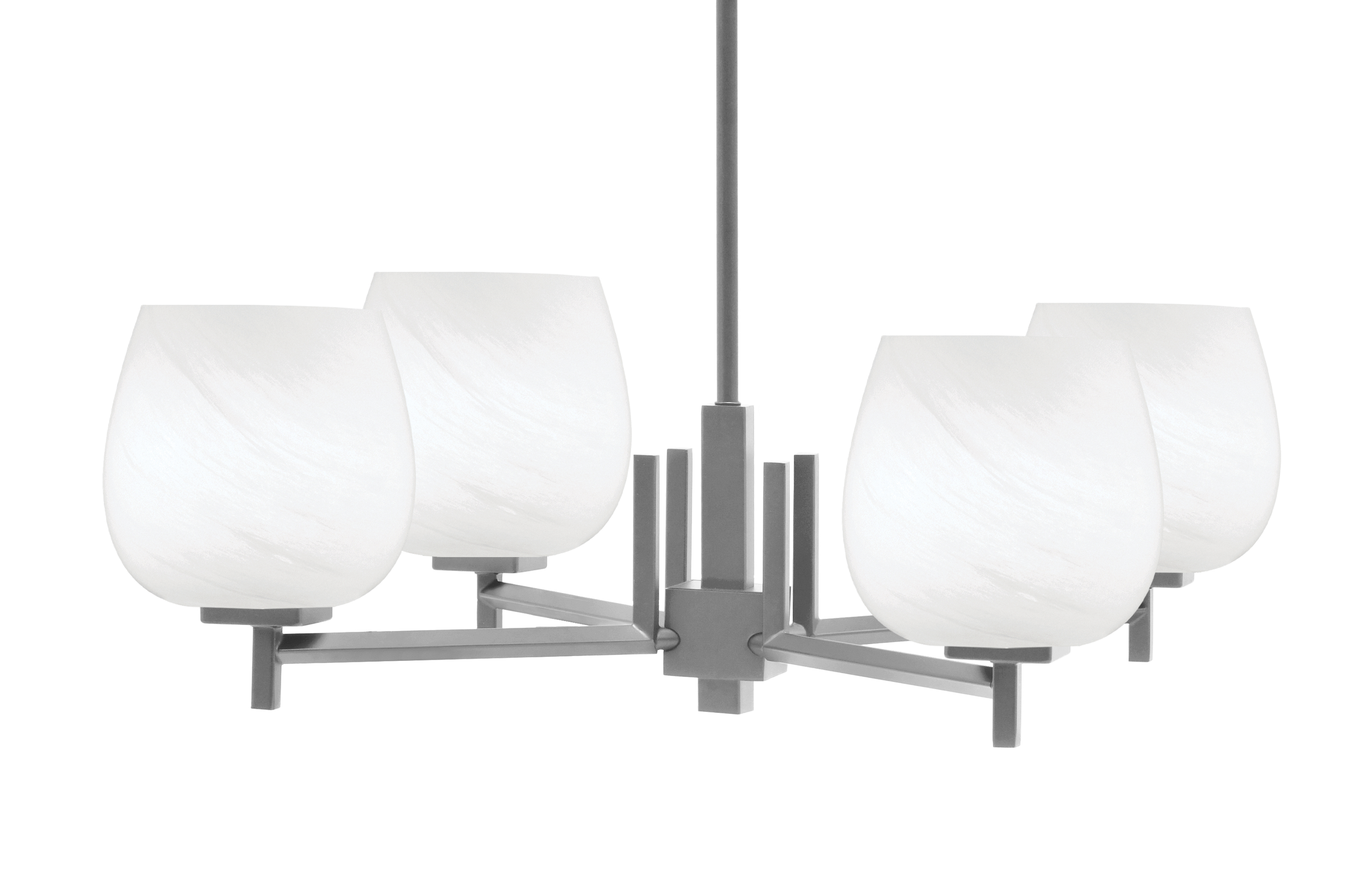 Toltec Lighting 1204-GP-4811 Franklin 4 Light Chandelier, Graphite Finish, 6″ White Marble Glass