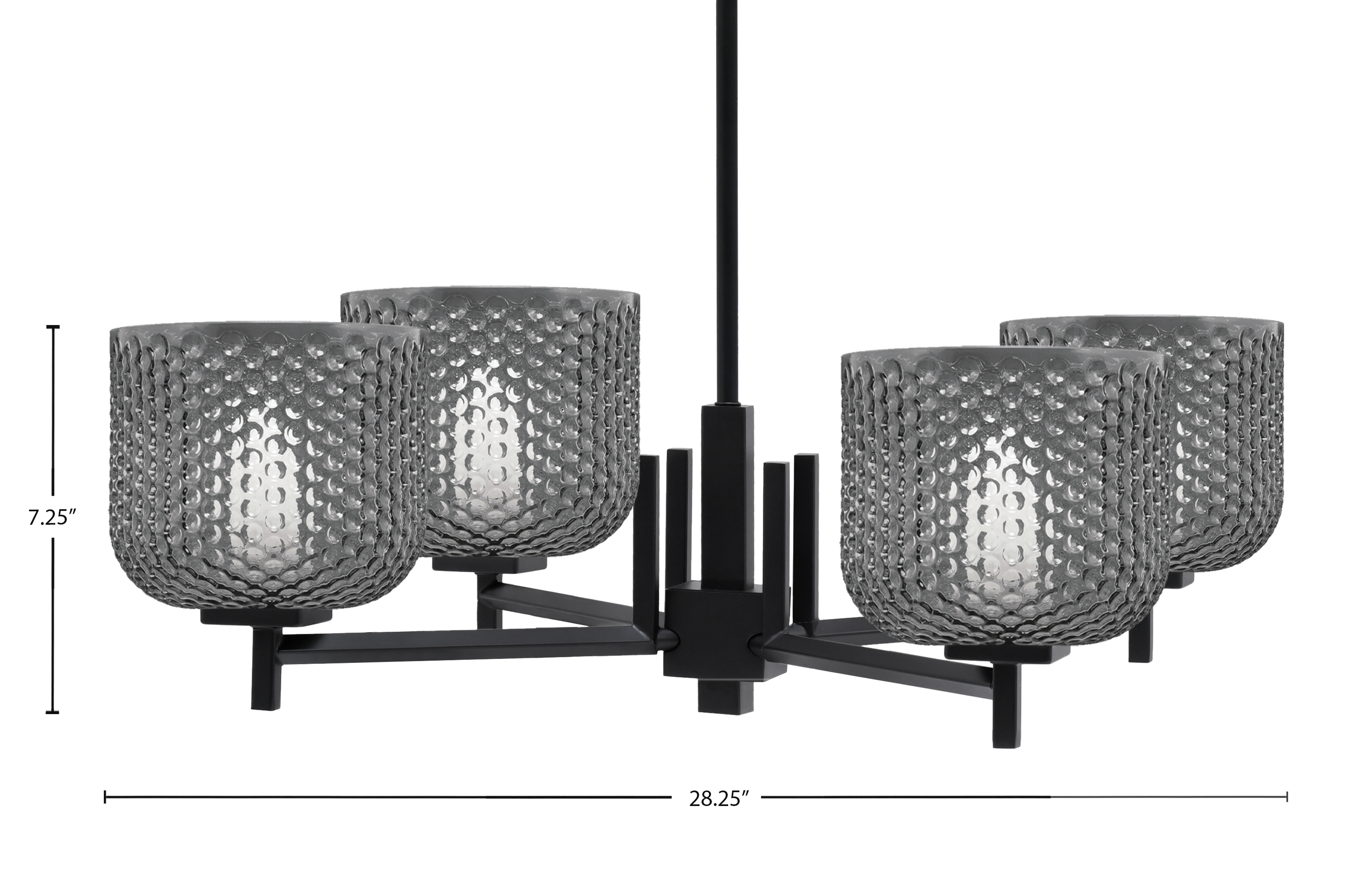 Toltec Lighting 1204-MB-4612 Franklin 4 Light Chandelier, Matte Black Finish, 6″ Smoke Textured Glass