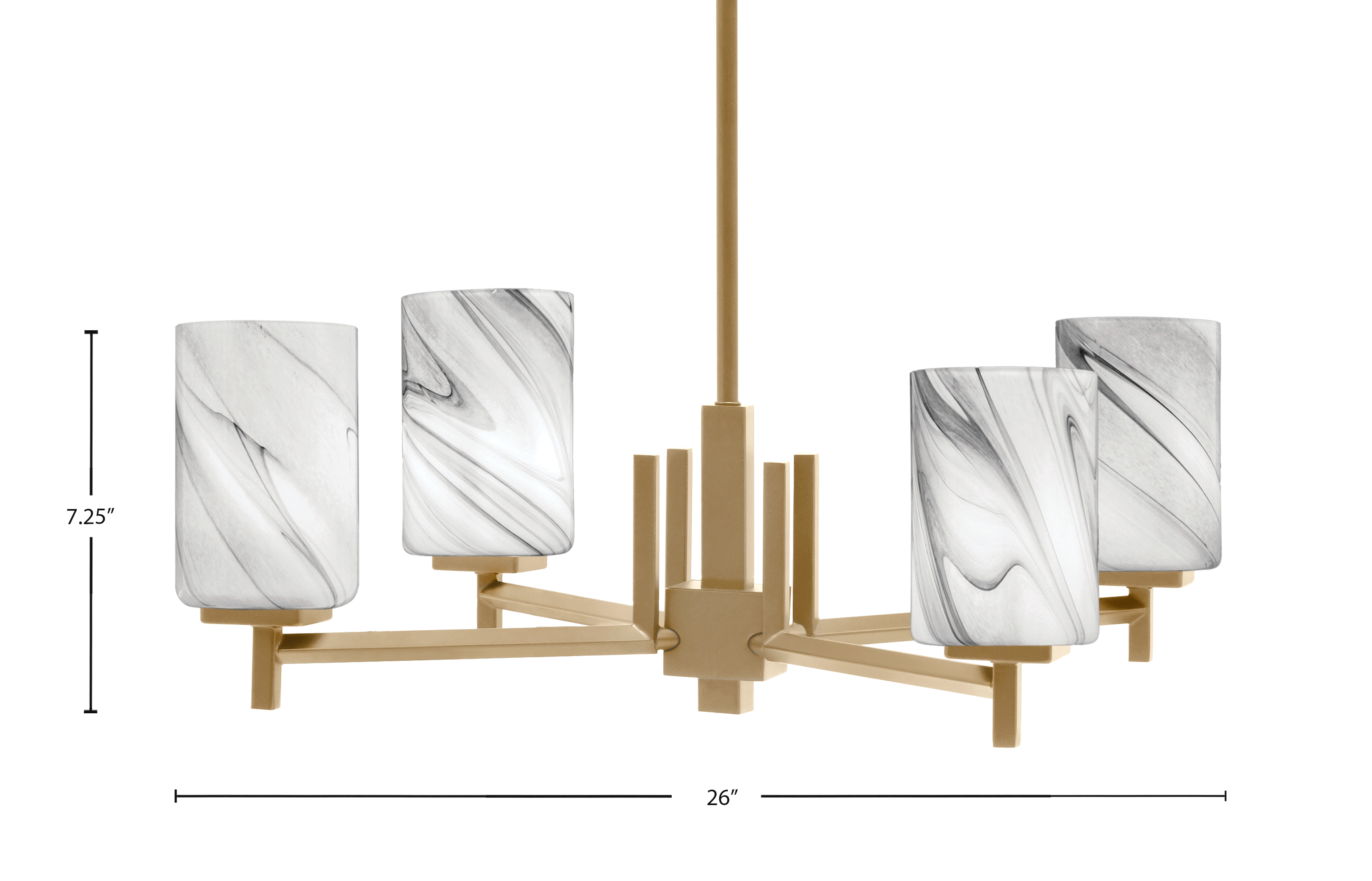 Transform your space with the Franklin 4 Light Chandelier. Featuring a sophisticated New Age Brass finish, it brings a sense of warmth and refinement to any space. The 4-inch onyx swirl glass shades introduce a unique, swirling pattern that adds visual interest and texture, gently diffusing the light to create a soft, inviting glow.