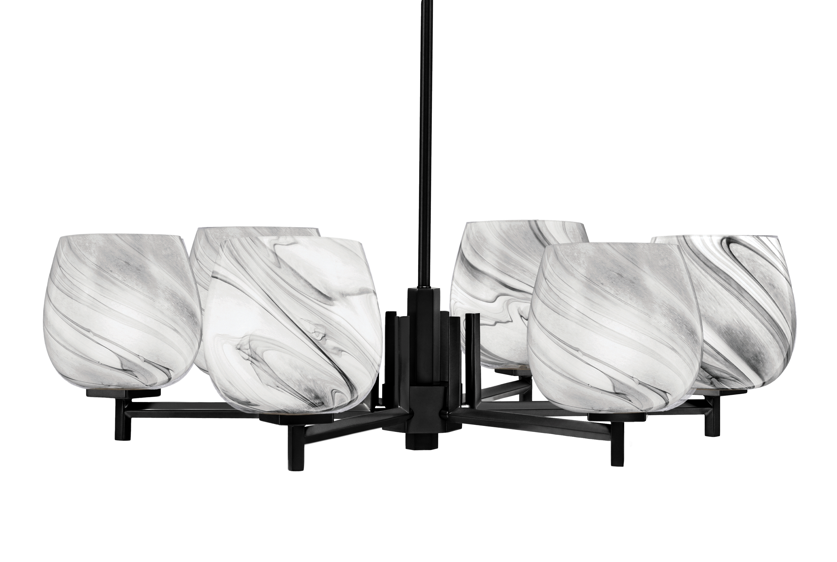 Toltec Lighting 1206-MB-4819 Franklin 6 Light Chandelier, Matte Black Finish, 6″ Onyx Swirl Glass