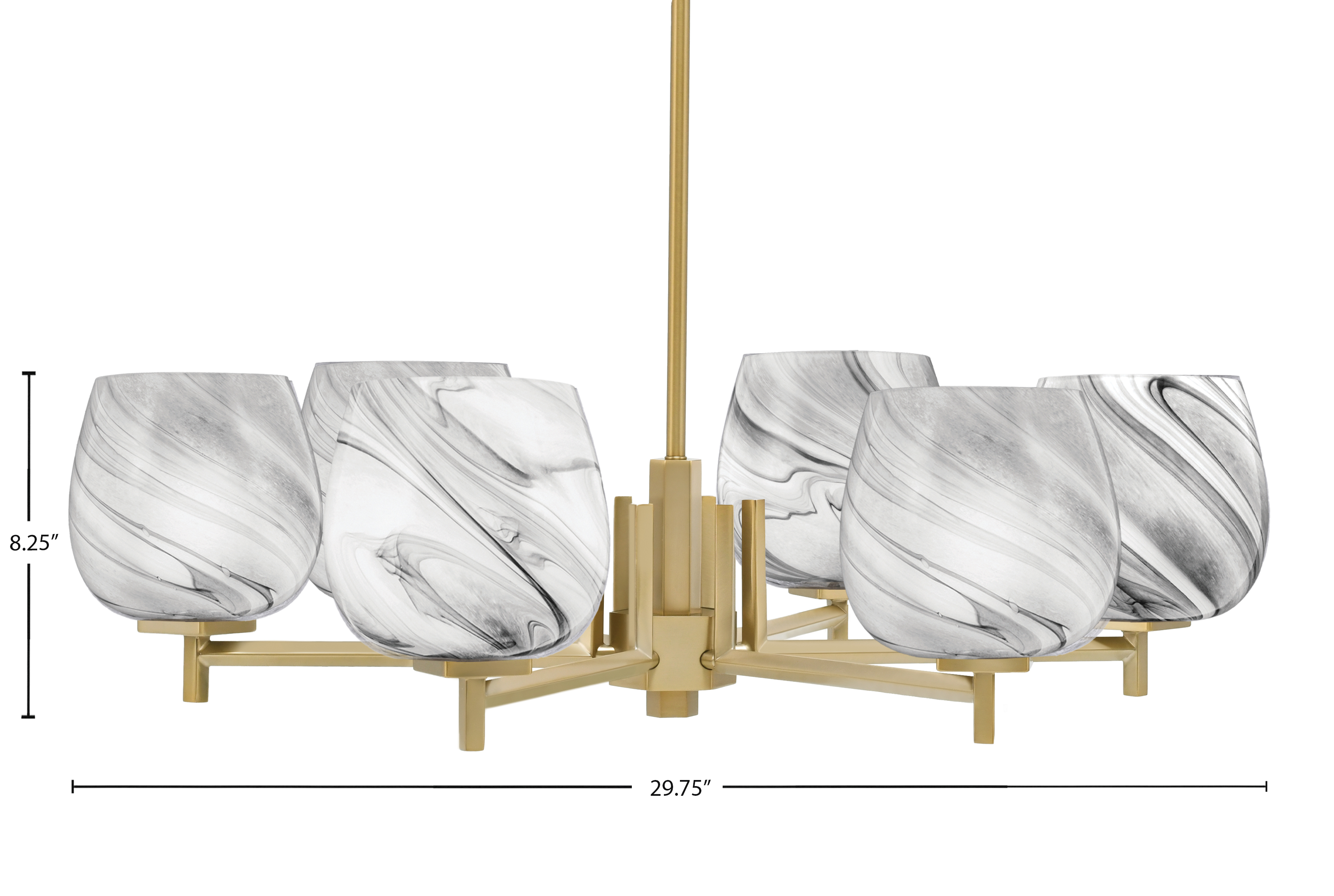Toltec Lighting 1206-NAB-4819 Franklin 6 Light Chandelier, New Age Brass Finish, 6″ Onyx Swirl Glass
