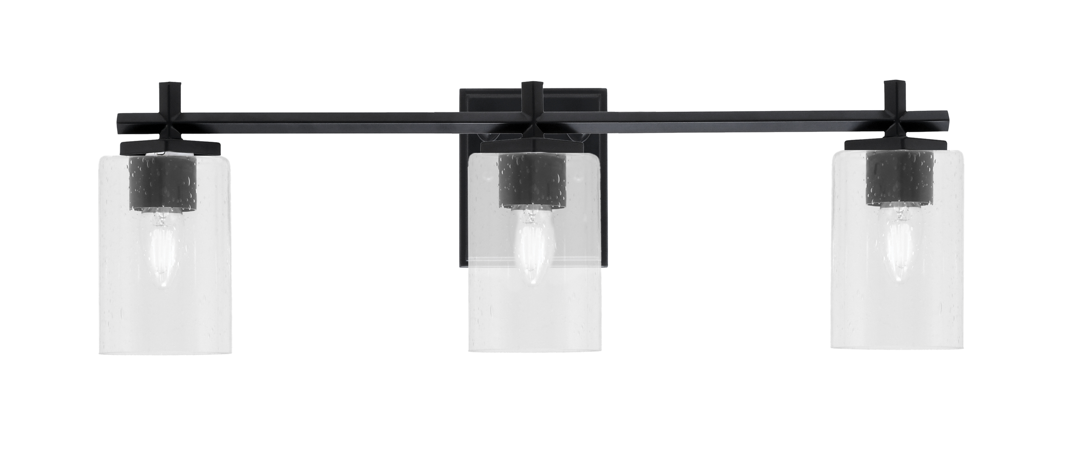 Toltec Lighting 1213-MB-300 Franklin 3 Light Bath Bar, Matte Black Finish, 4″ Clear Bubble Glass