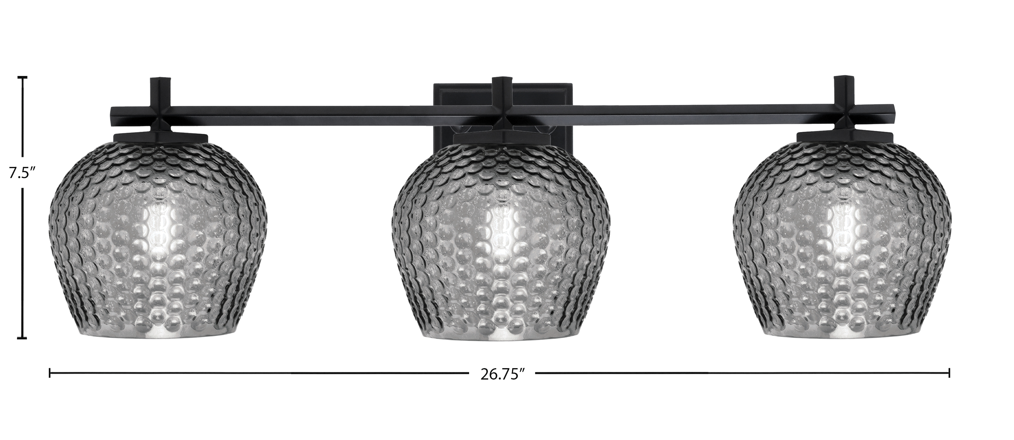 Toltec Lighting 1213-MB-4602 Franklin 3 Light Bath Bar, Matte Black Finish, 6″ Smoke Textured Glass