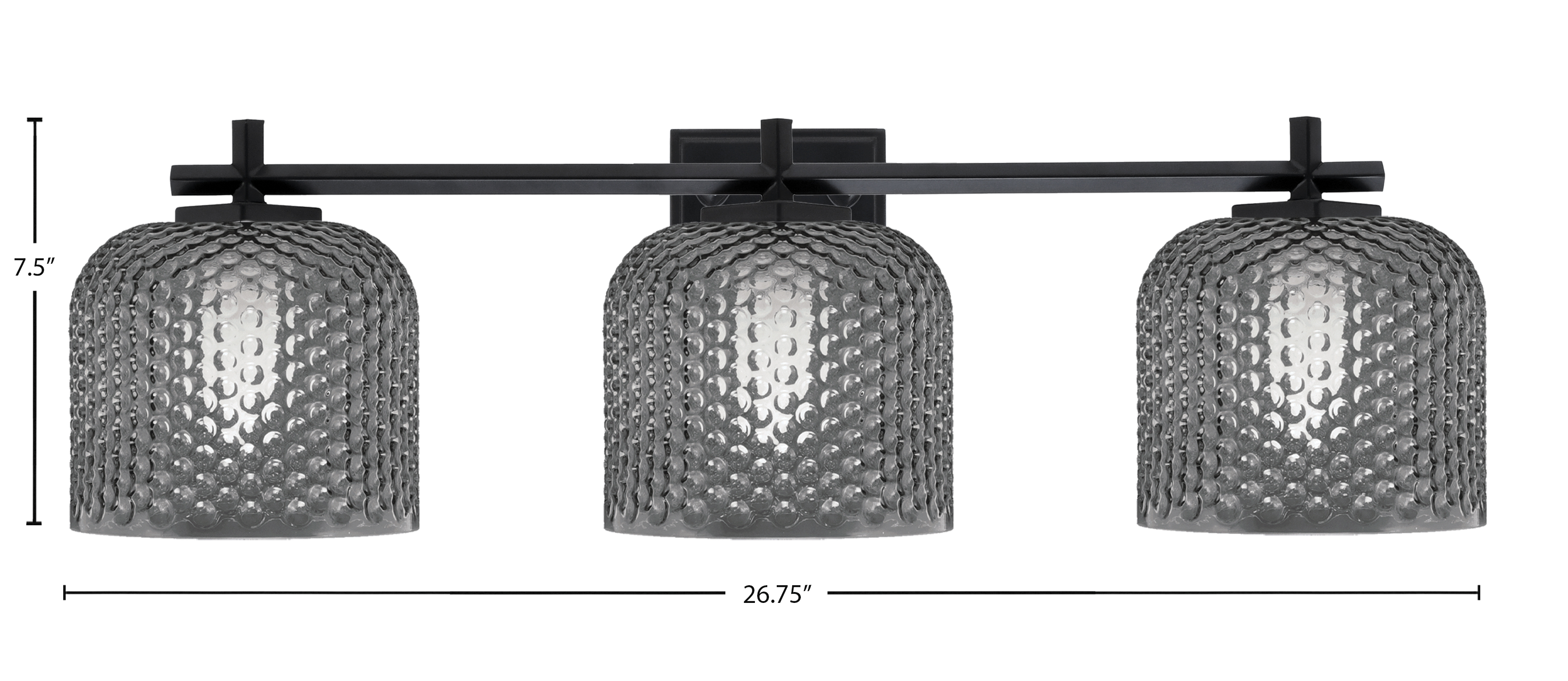 Elevate your bathroom’s style with the Franklin 3-Light Bath Bar. The Matte Black finish offers a sleek, modern aesthetic, while the 6-inch Smoke Textured Glass shades bring a touch of elegance and depth. The textured glass creates a soft, atmospheric glow that adds warmth to your space.