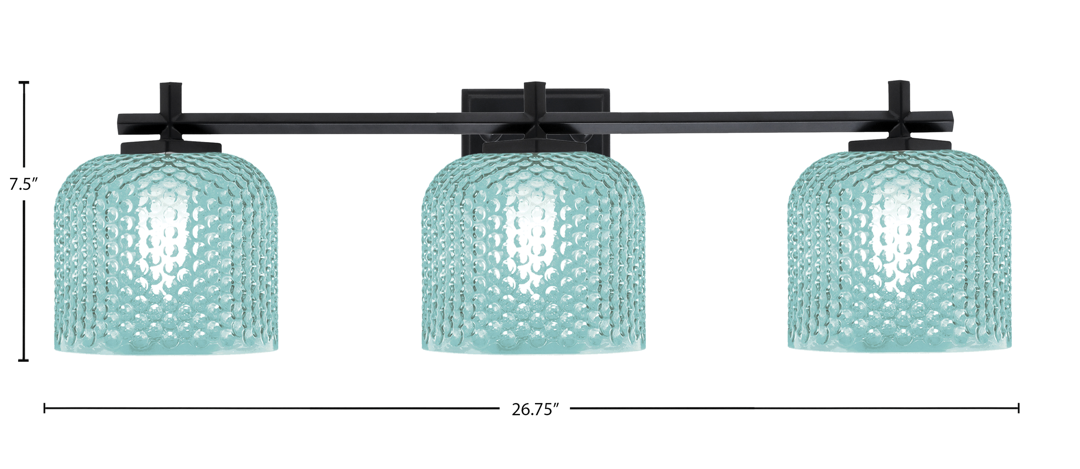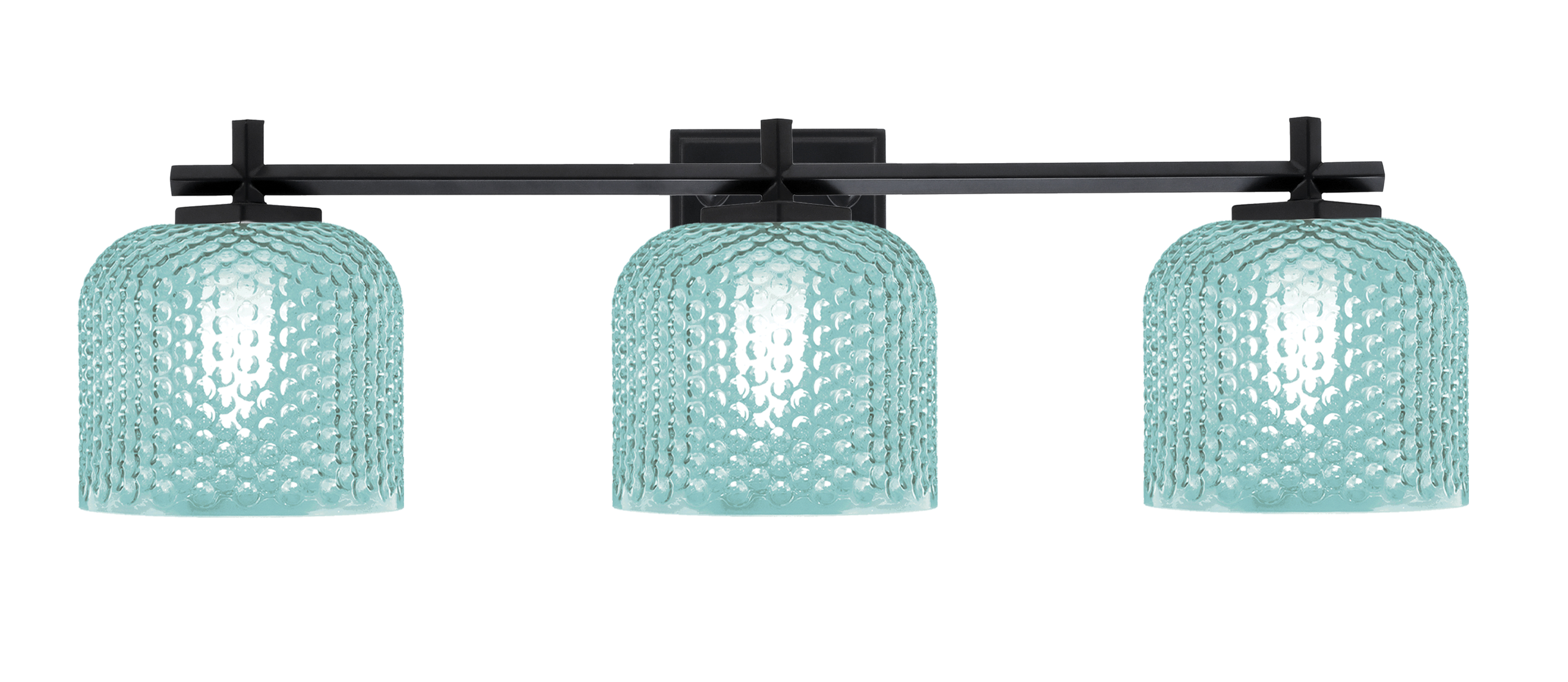 Toltec Lighting 1213-MB-4615 Franklin 3 Light Bath Bar, Matte Black Finish, 6″ Turquoise Textured Glass