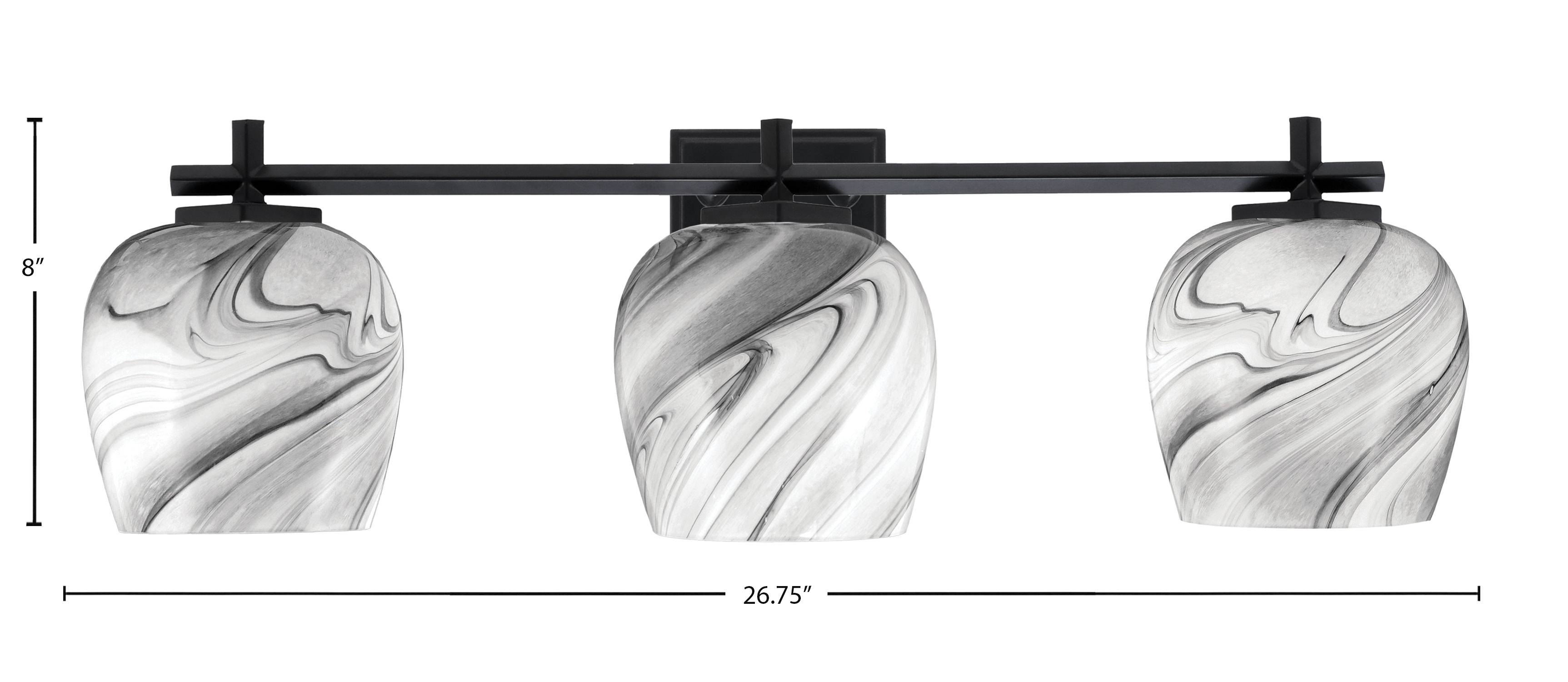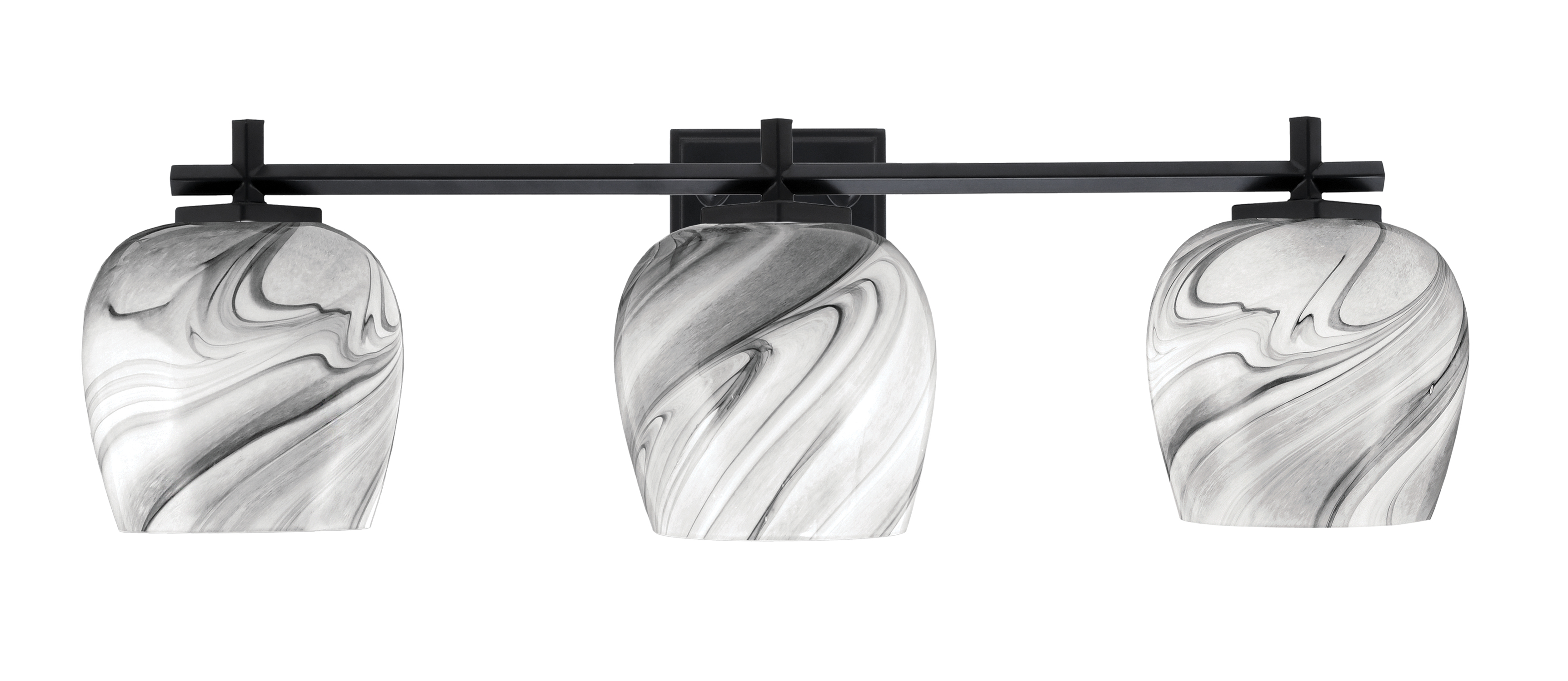 Toltec Lighting 1213-MB-4819 Franklin 3 Light Bath Bar, Matte Black Finish, 6″ Onyx Swirl Glass