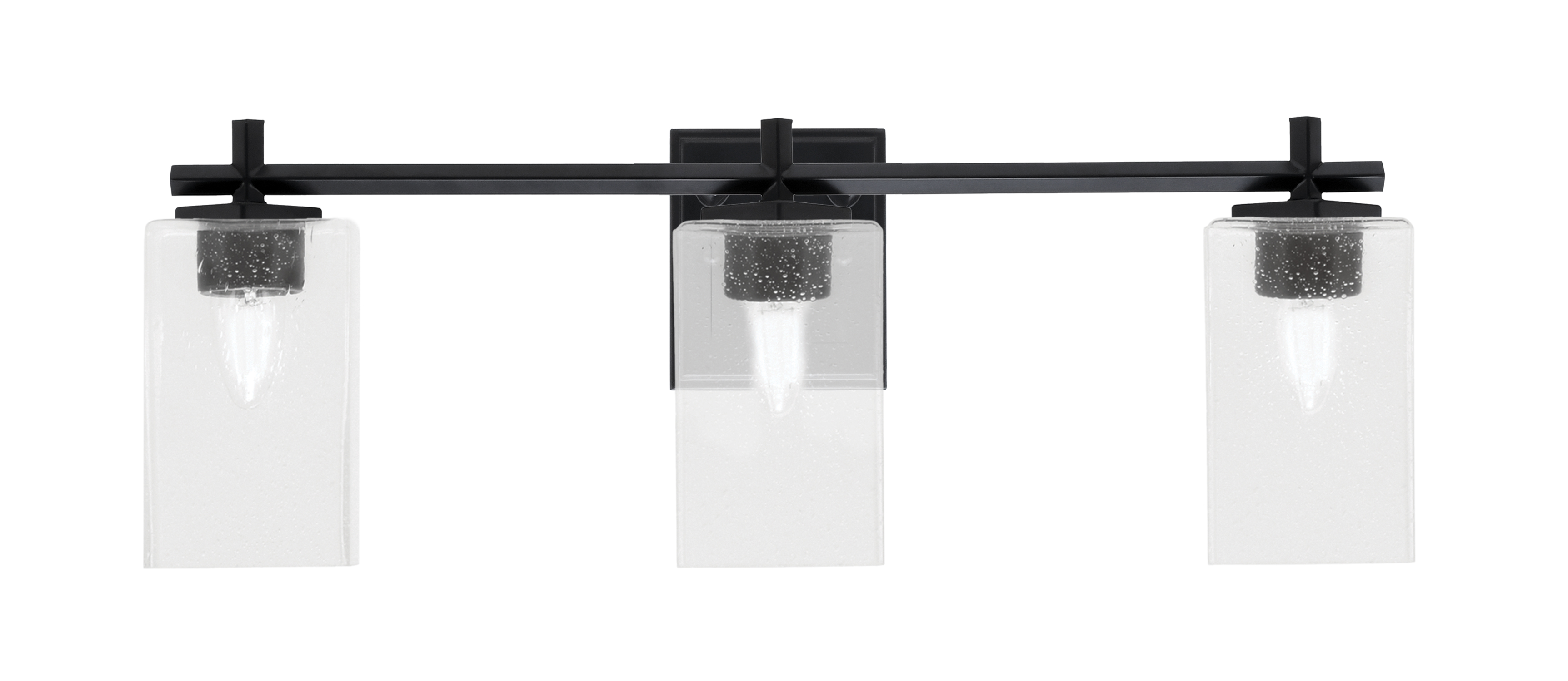 Toltec Lighting 1213-MB-530 Franklin 3 Light Bath Bar, Matte Black Finish, 4″ Square Clear Bubble Glass