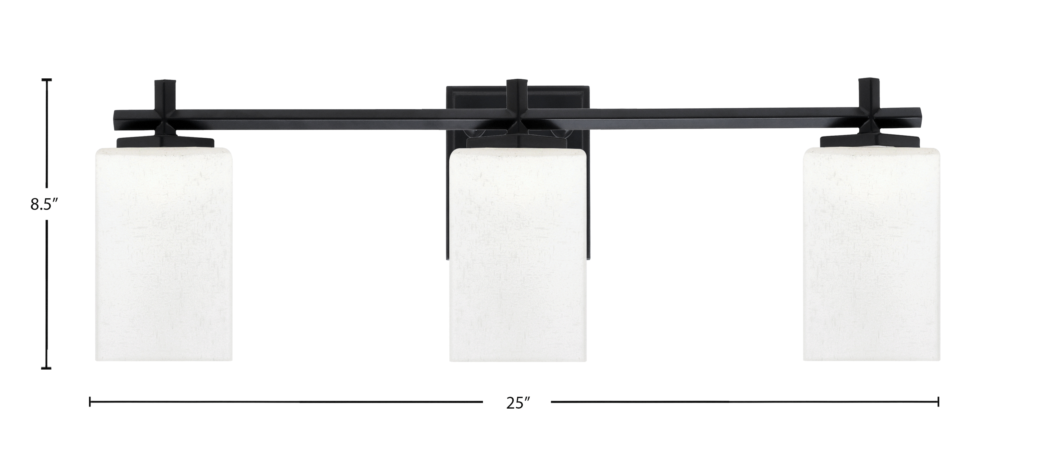Toltec Lighting 1213-MB-531 Franklin 3 Light Bath Bar, Matte Black Finish, 4″ Square White Muslin Glass