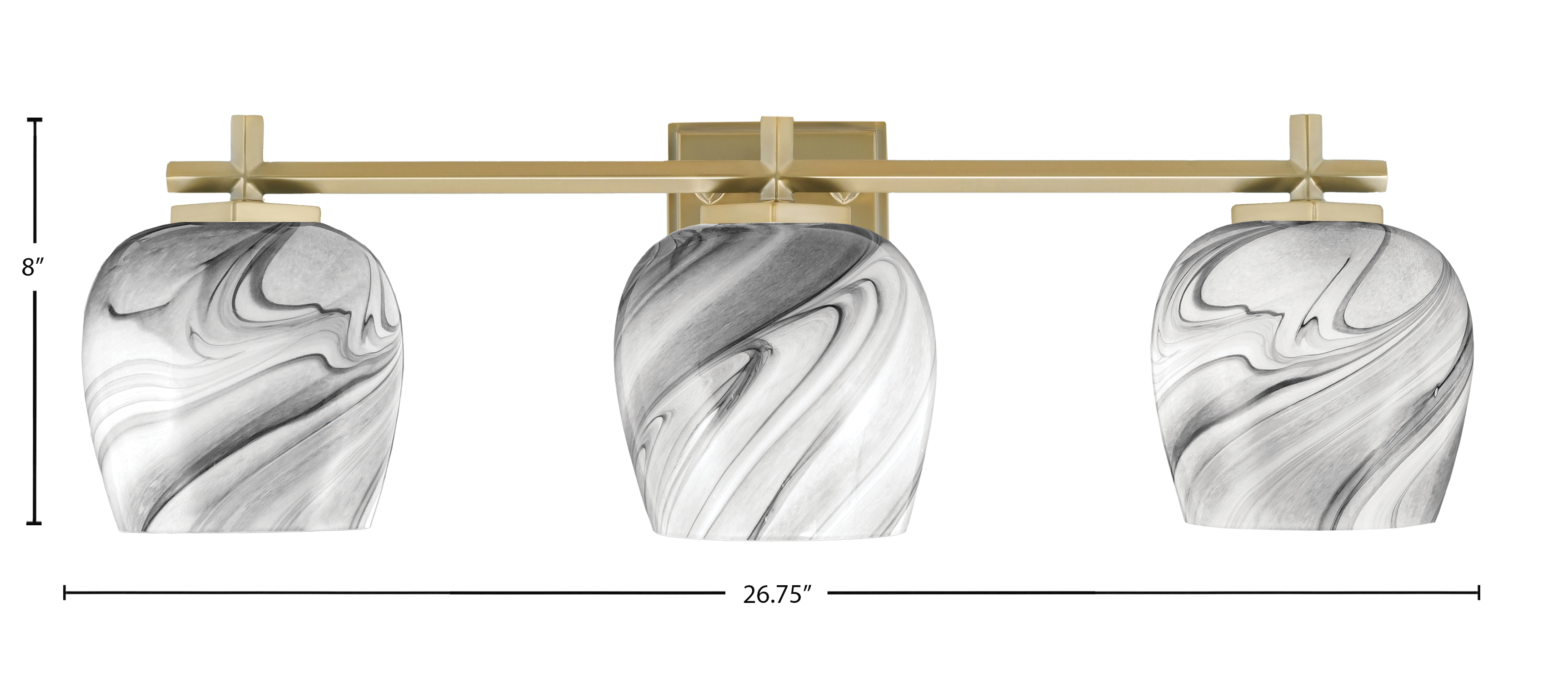 Toltec Lighting 1213-NAB-4819 Franklin 3 Light Bath Bar, New Age Brass Finish, 6″ Onyx Swirl Glass