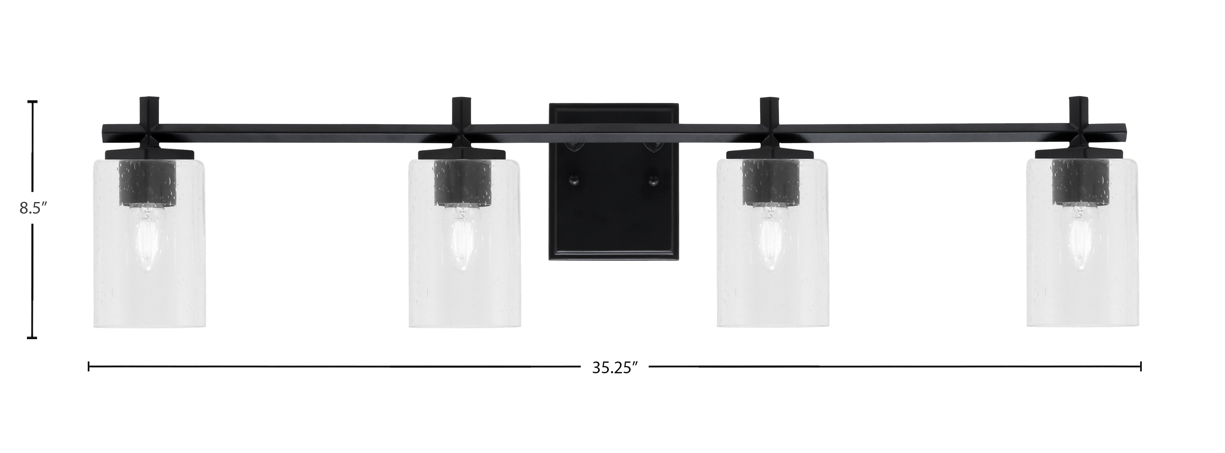 Toltec Lighting 1214-MB-300 Franklin 4 Light Bath Bar, Matte Black Finish, 4″ Clear Bubble Glass