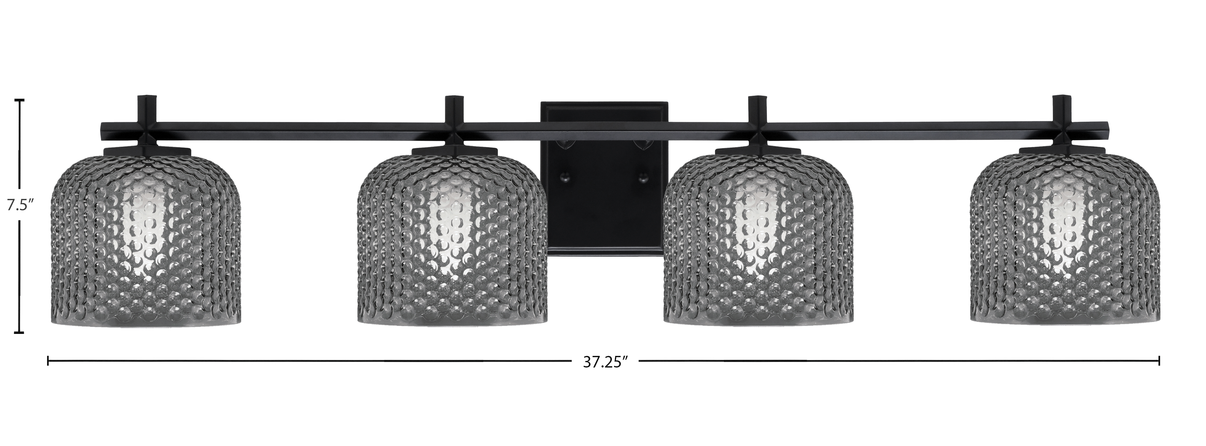 Toltec Lighting 1214-MB-4612 Franklin 4 Light Bath Bar, Matte Black Finish, 6″ Smoke Textured Glass