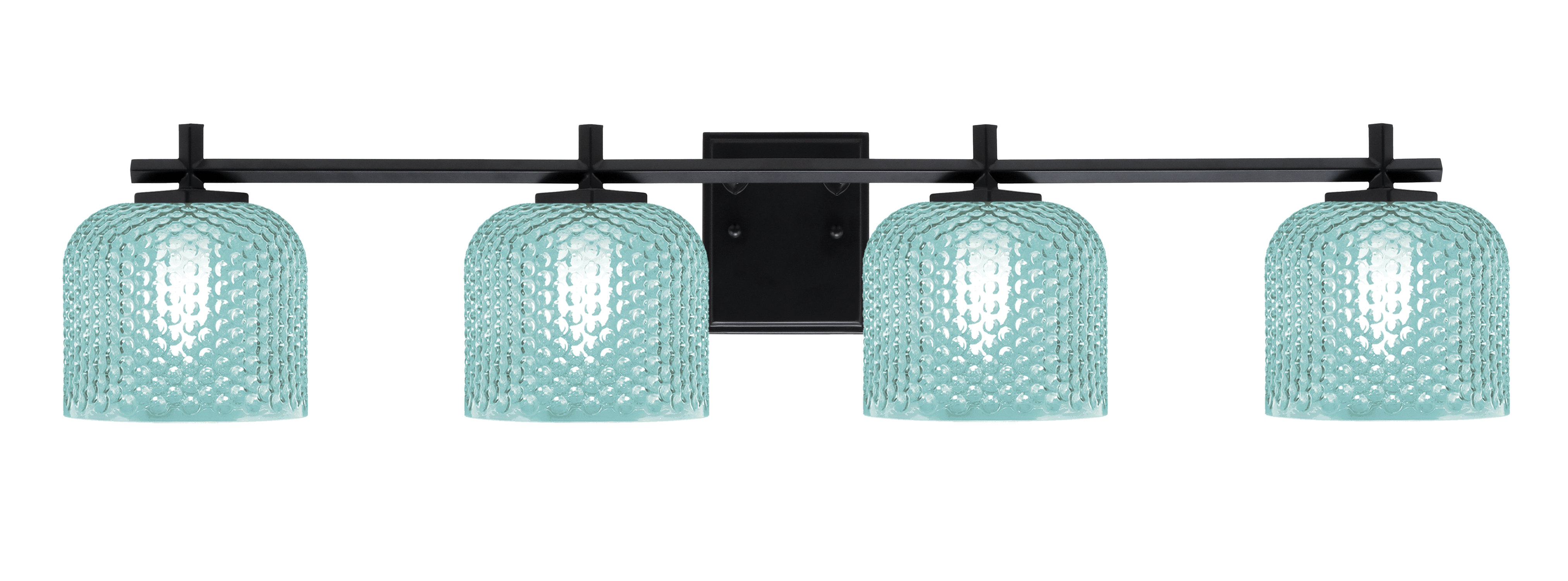 Toltec Lighting 1214-MB-4615 Franklin 4 Light Bath Bar, Matte Black Finish, 6″ Turquoise Textured Glass