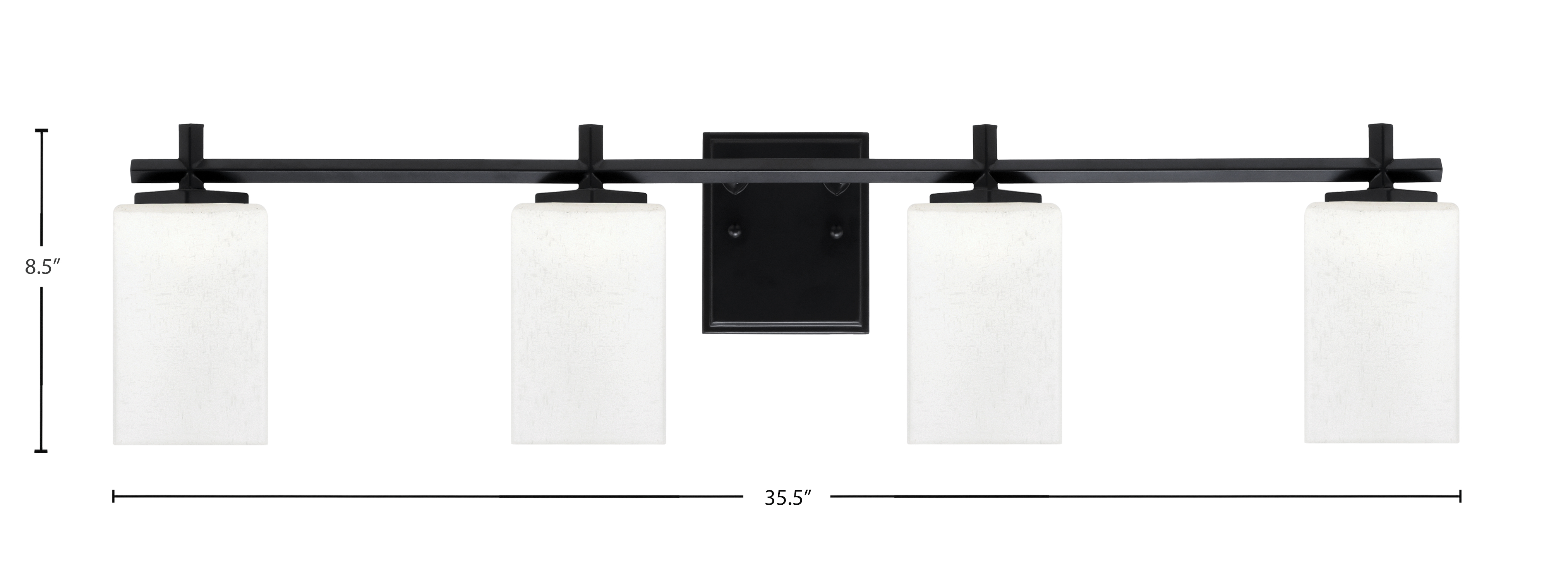 Toltec Lighting 1214-MB-531 Franklin 4 Light Bath Bar, Matte Black Finish, 4″ Square White Muslin Glass