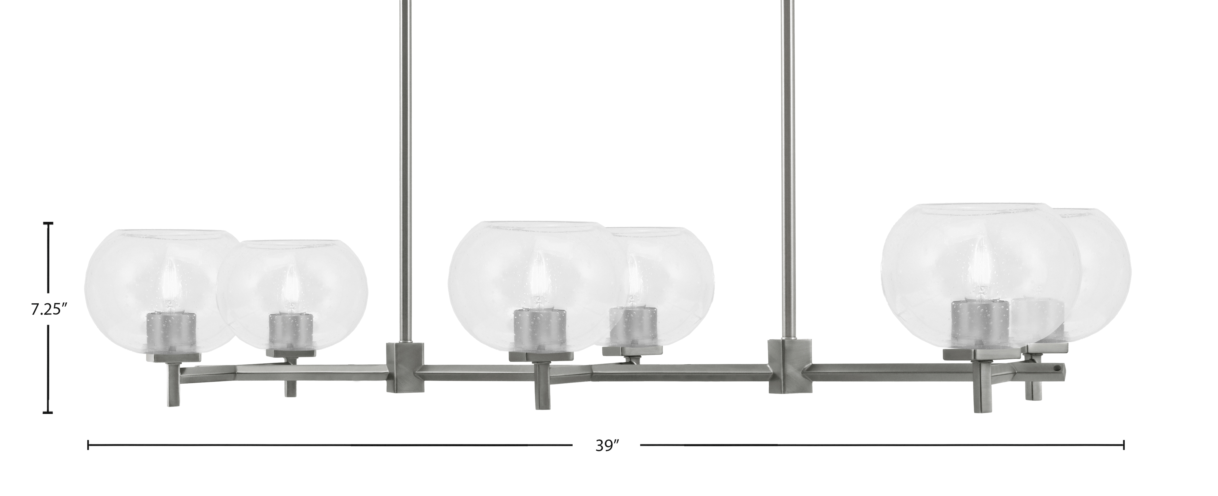 Illuminate your space with the Franklin 6-Light Island Light, showcasing a sophisticated Graphite finish paired with six 7″ clear bubble glass shades. The bubble glass design adds texture and visual interest, while allowing the light to shine evenly across your room. This bold, modern fixture is ideal for kitchen islands, dining areas, or contemporary living spaces.
