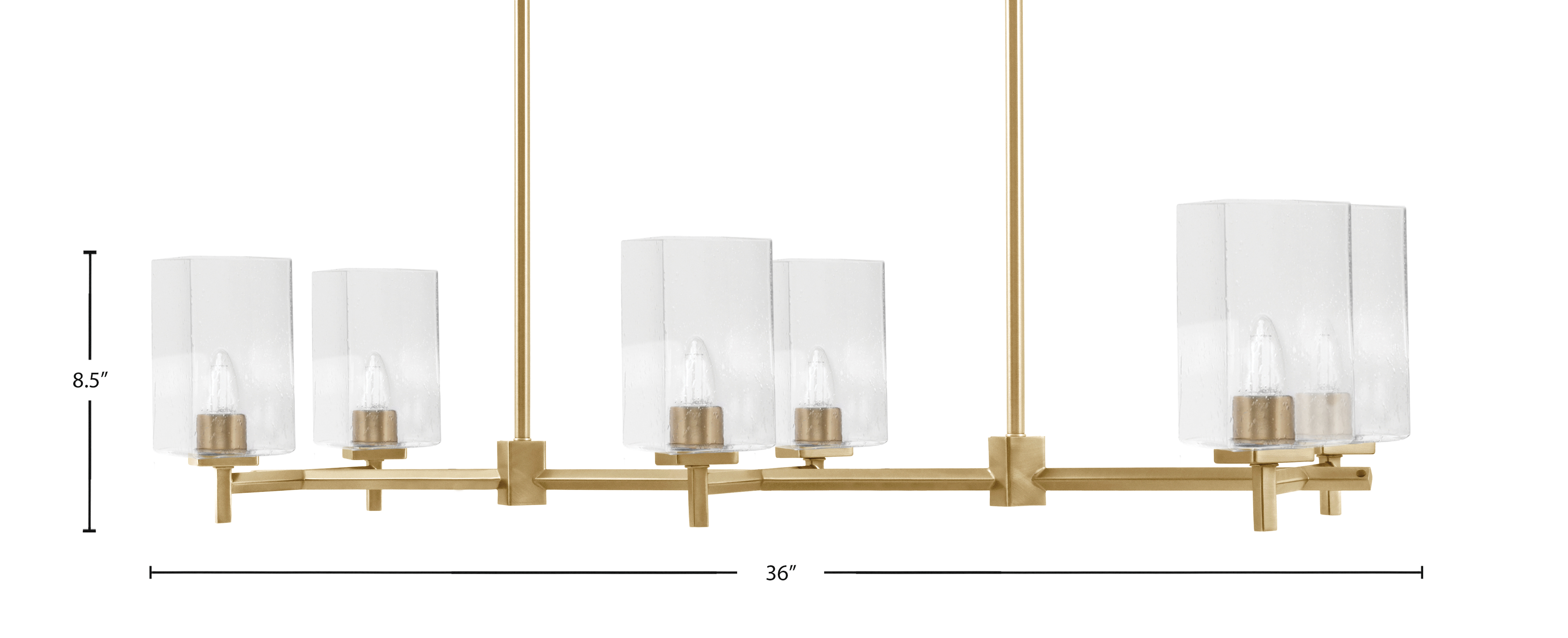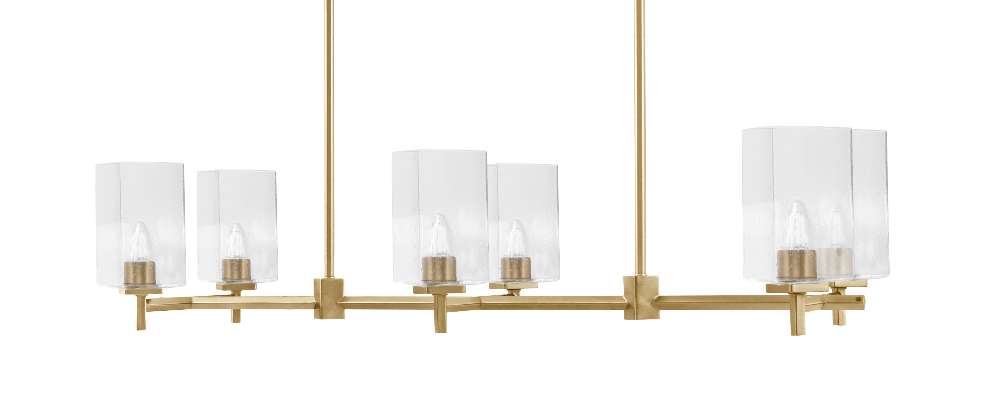 Make a bold yet refined statement with the Franklin 6-Light Island Light, a perfect fusion of sleek geometry and vintage charm. The New Age Brass finish offers a contemporary touch, while the 4-inch square Clear Bubble glass shades add a dynamic visual texture—catching and refracting light. This fixture balances form and function beautifully.