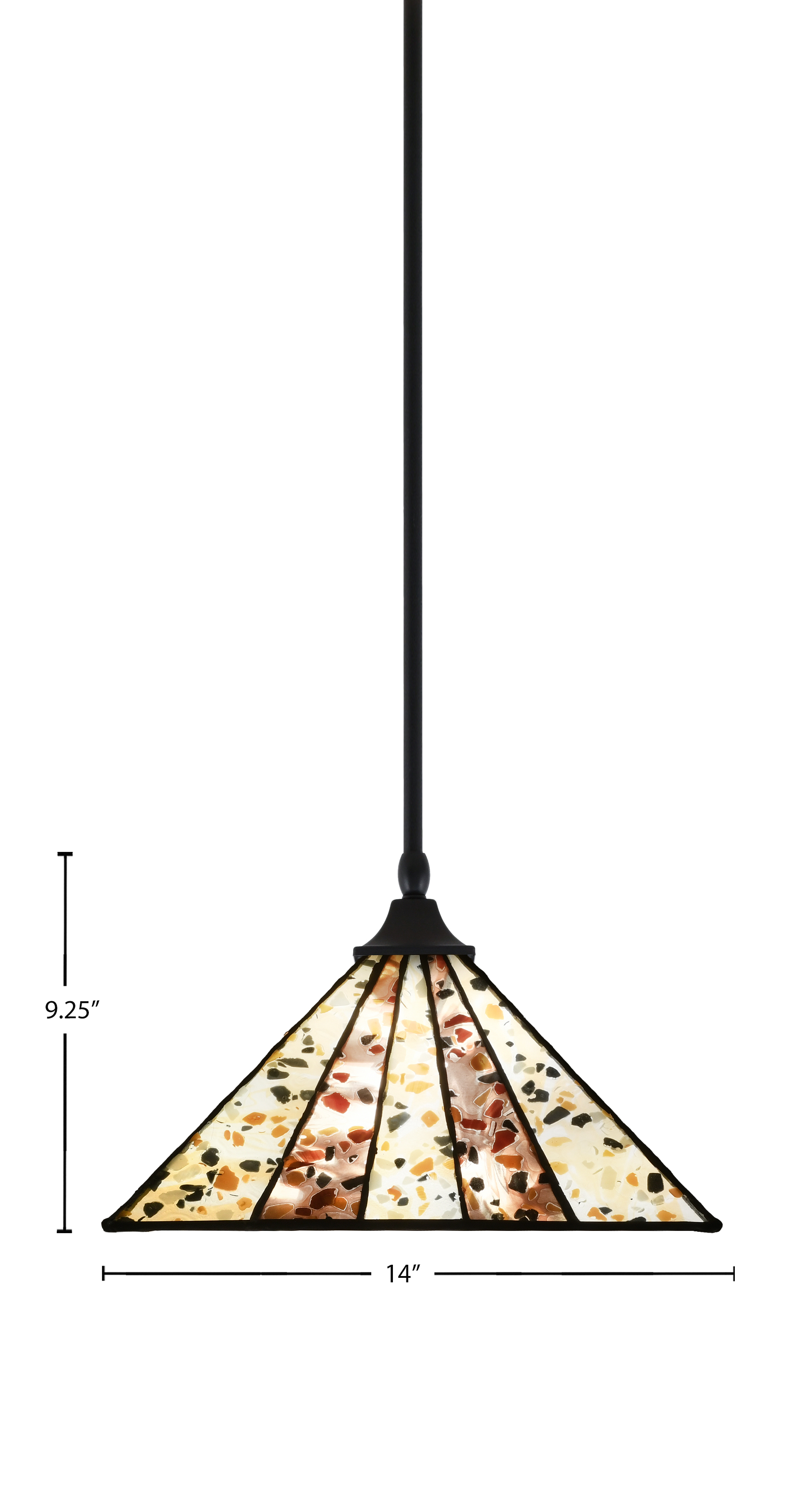 Toltec Lighting 13-MB-956 Stem Hung Pendant, Square Fitter, Matte Black Finish, 14″ Fiesta Art Glass