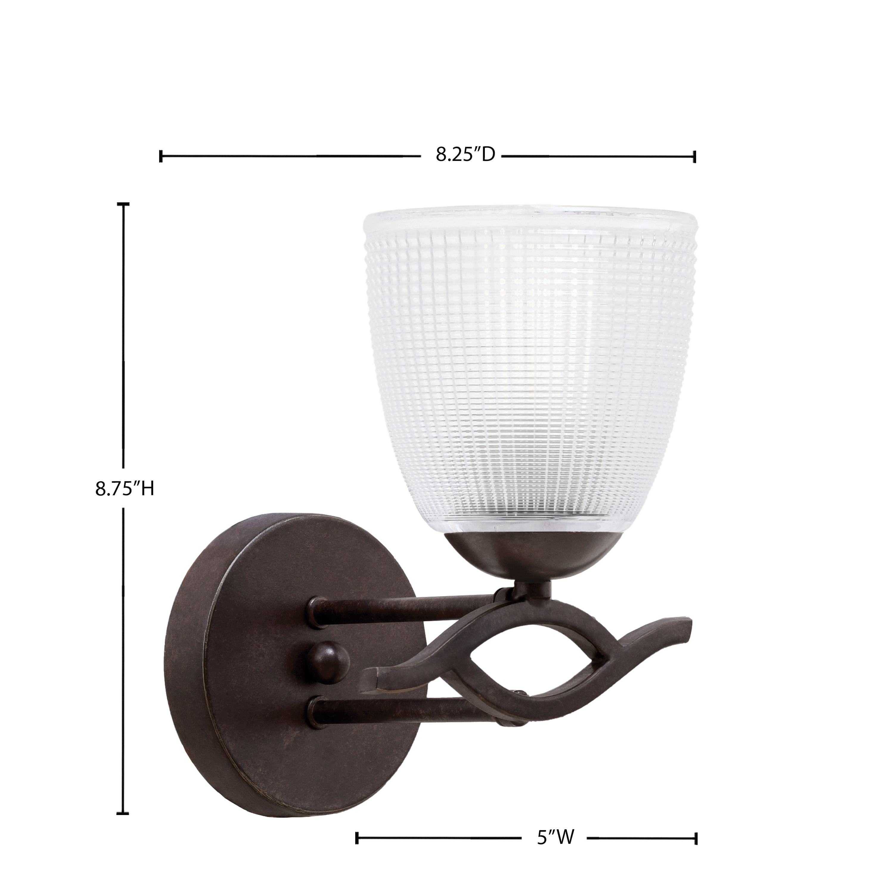 Toltec Lighting 141-DG-500 Revo 1 Light Wall Sconce, Dark Granite Finish, 5″ Clear Ribbed Glass