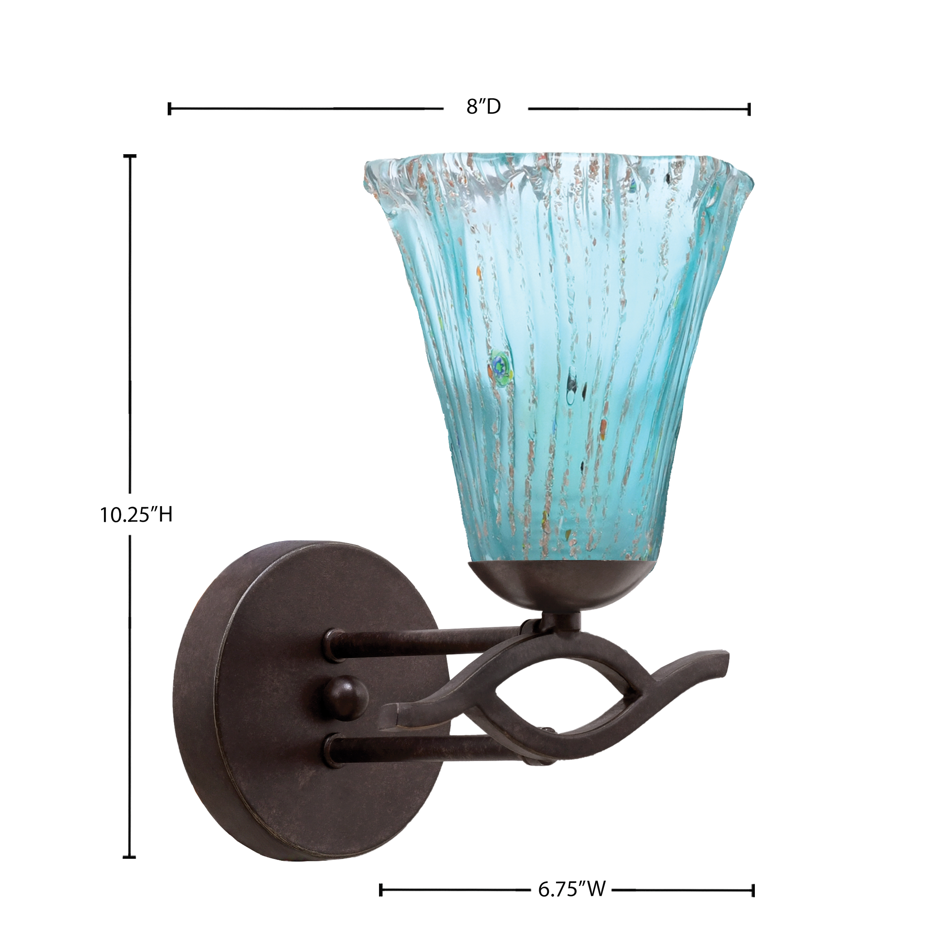 Toltec Lighting 141-DG-725 Revo Wall Sconce, Dark Granite Finish, 5.5″ Fluted Teal Crystal Glass
