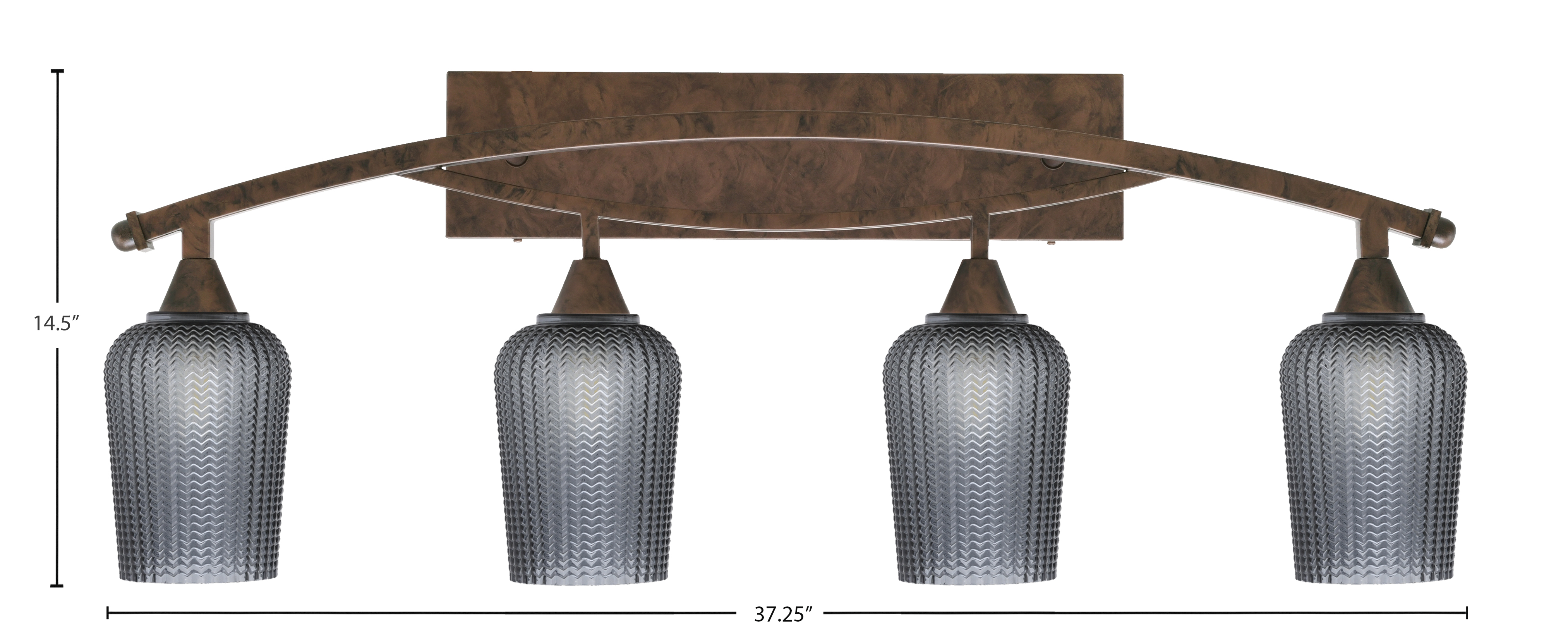 Toltec Lighting 174-BRZ-4252 Bow 4 Light Bath Bar, Bronze Finish, 5″ Smoke Textured Glass