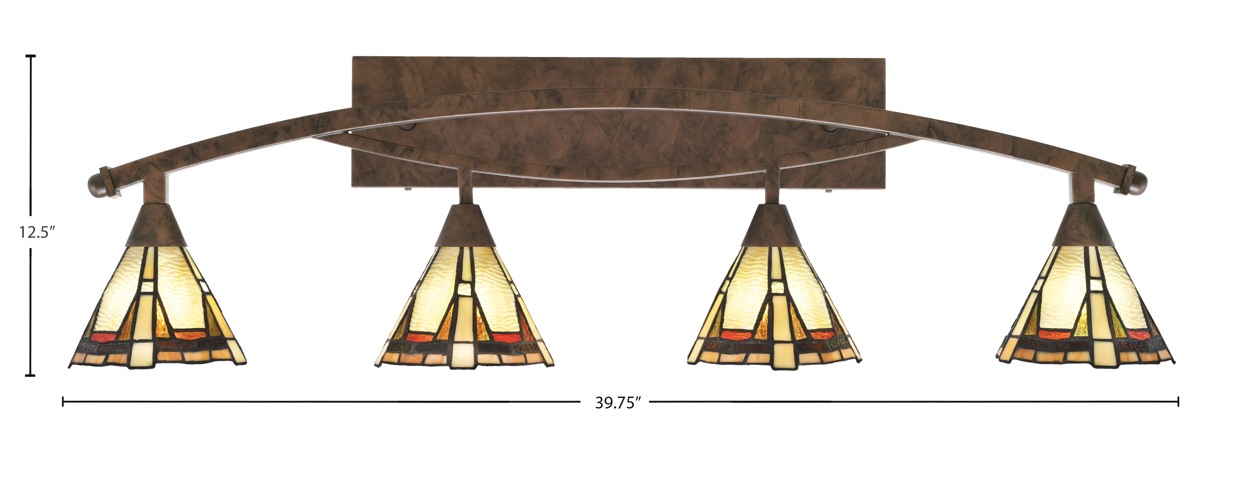 Toltec Lighting 174-BRZ-9345 Bow 4 Light Bath Bar, Bronze Finish, 7″ Zion Art Glass