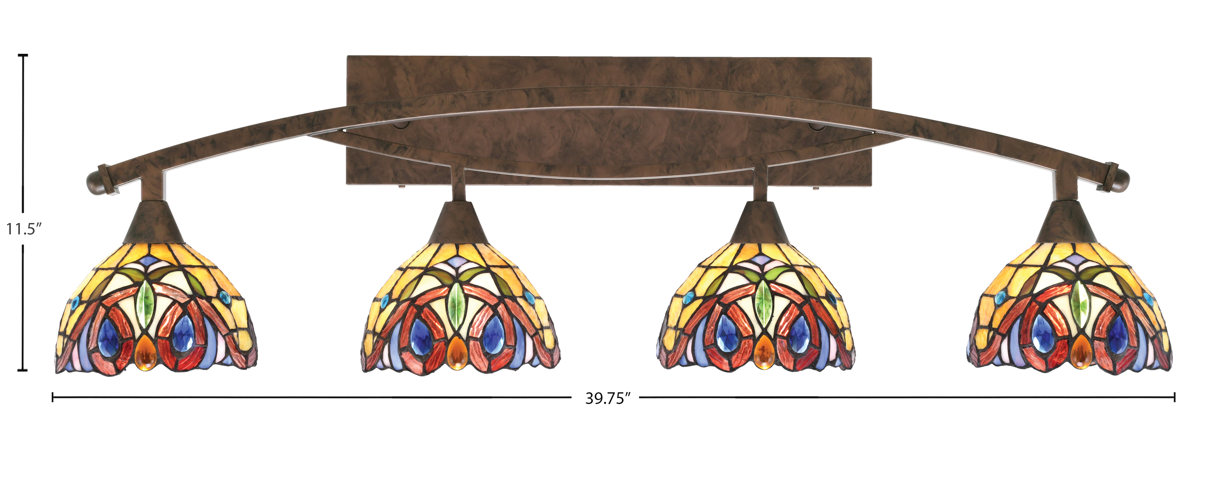 Toltec Lighting 174-BRZ-9445 Bow 4 Light Bath Bar, Bronze Finish, 7″ Lynx Art Glass