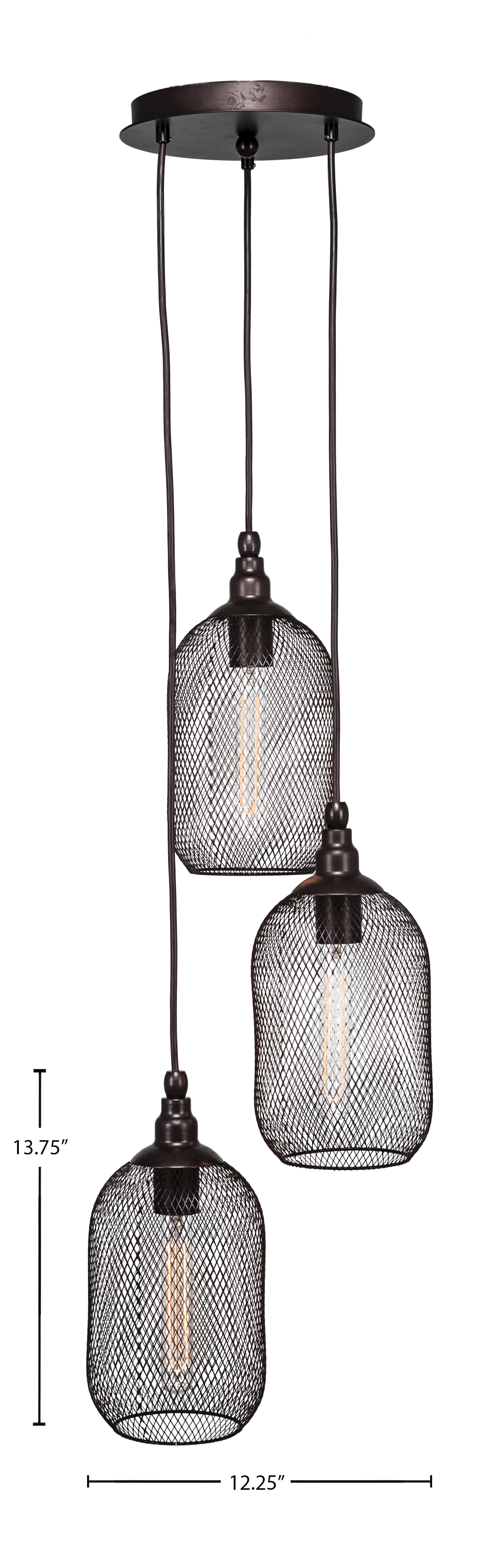 Toltec Lighting 1816-BRZ-1804-AT9S Plexus 3 Light Cord Hung Cluster Pendalier, Bronze Finish, Amber Antique Bulbs
