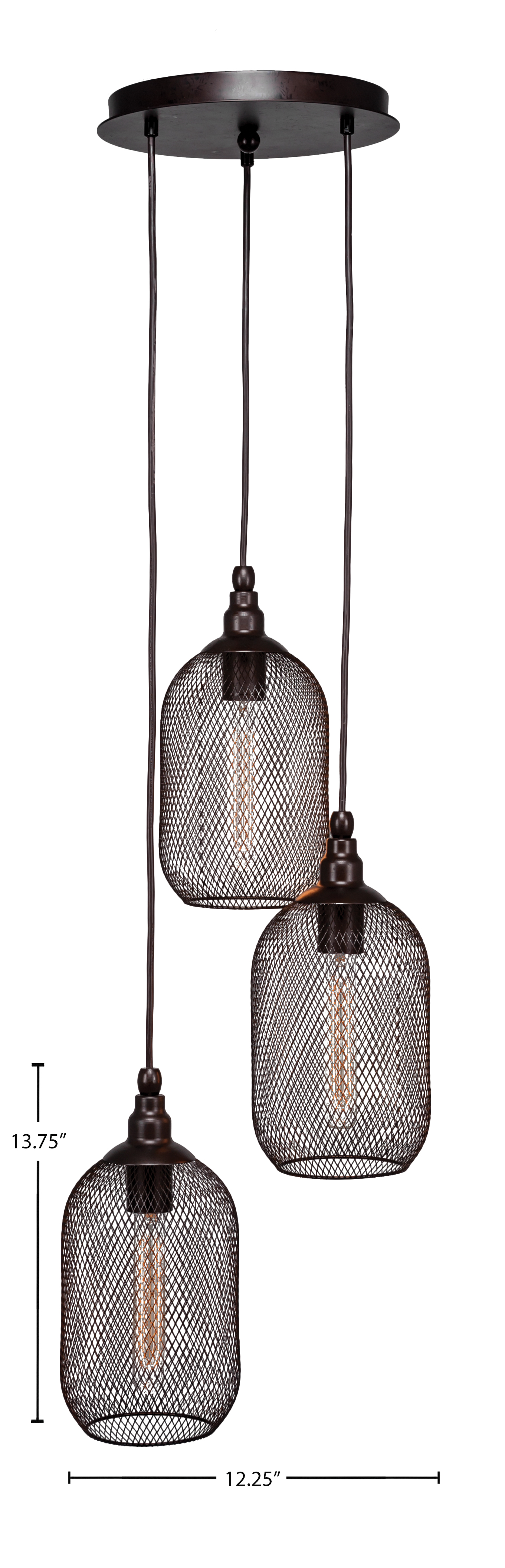 Toltec Lighting 1818-BRZ-1804-AT9S Plexus 3 Light Cord Hung Cluster Pendalier, Bronze Finish, Amber Antique Bulbs