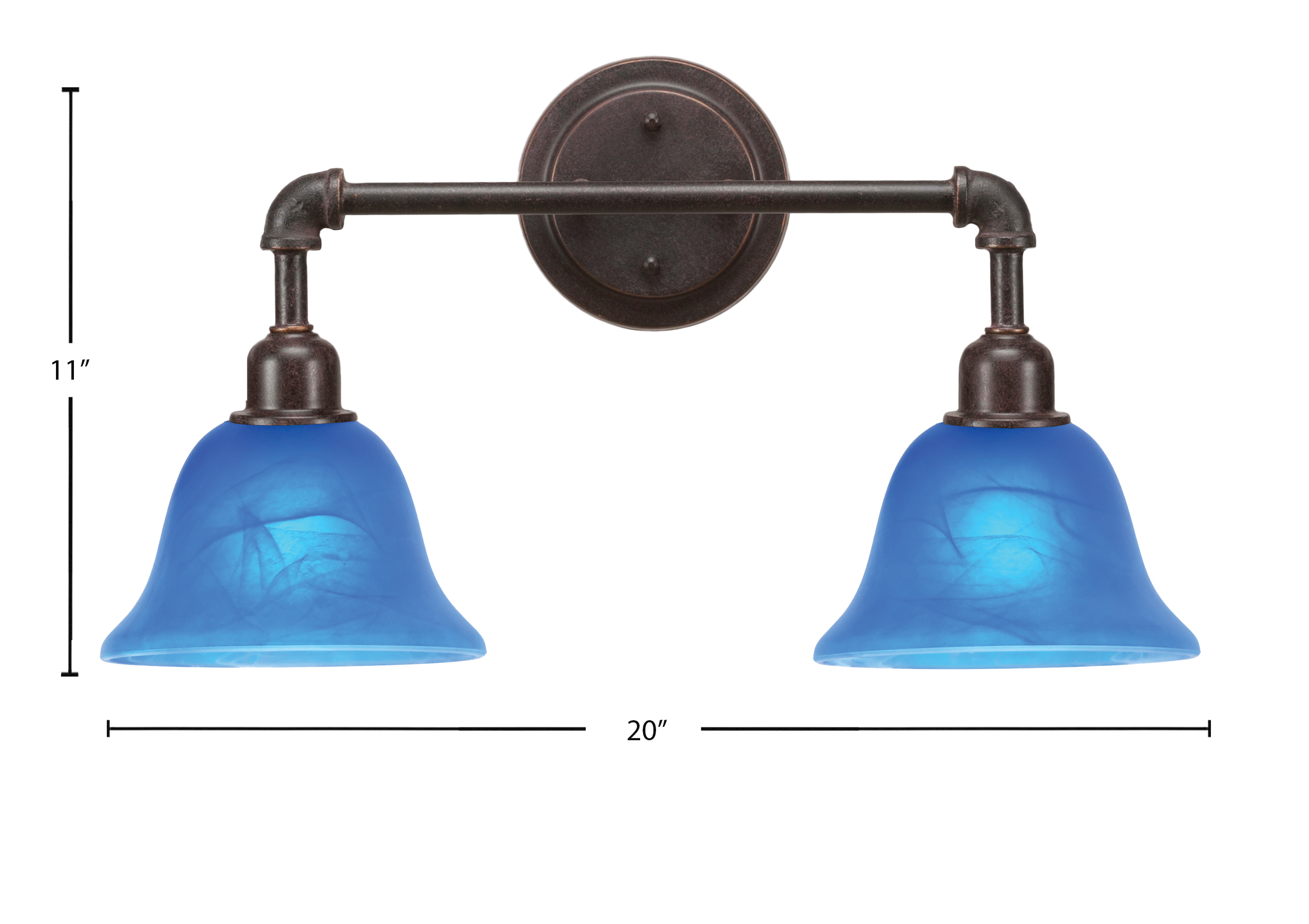 Toltec Lighting 182-DG-4155 Vintage 2 Light Bath Bar, Dark Granite Finish, 7″ Blue Italian Glass