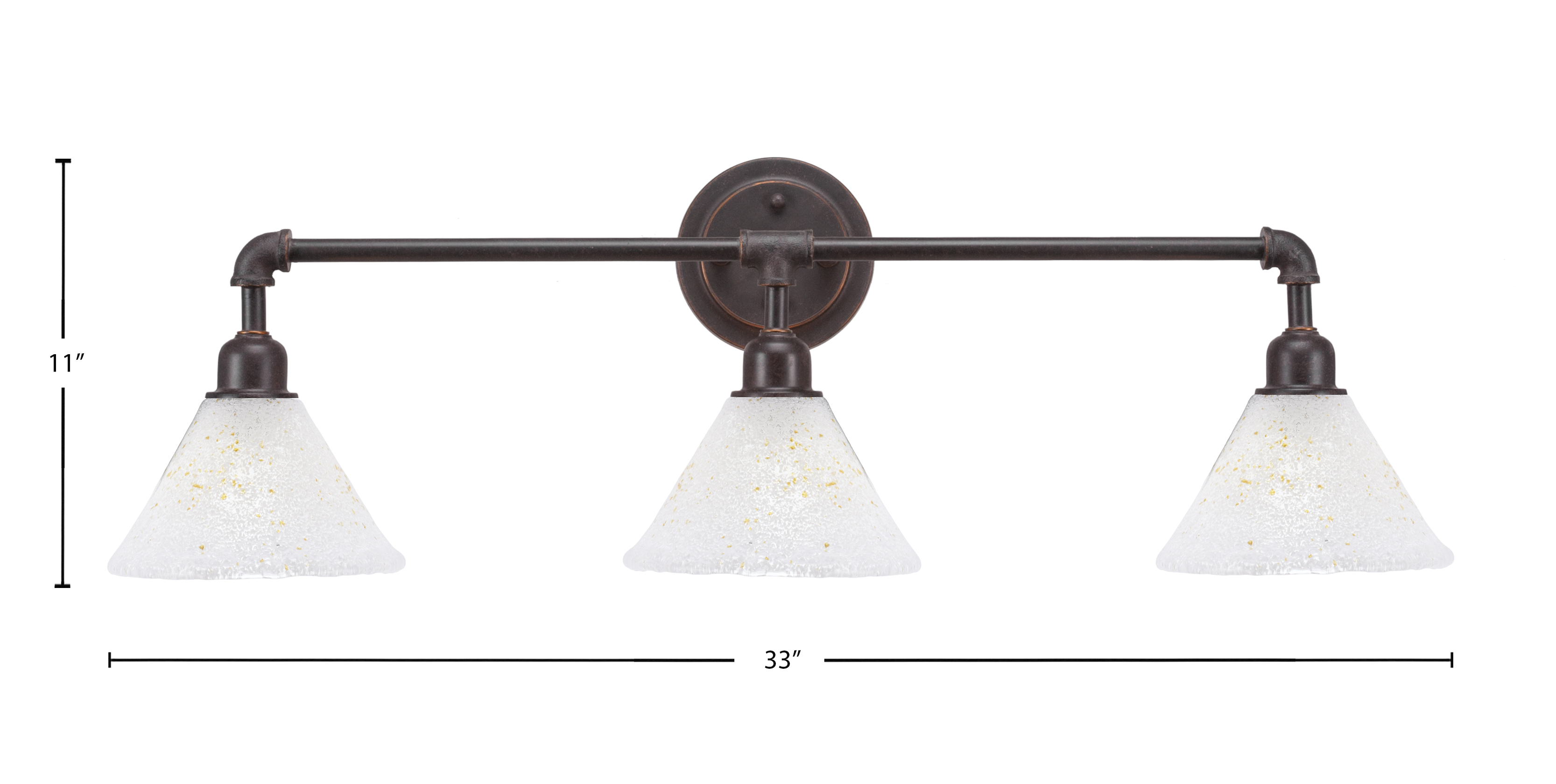 Toltec Lighting 183-DG-7145 Vintage 3 Light Bath Bar, Dark Granite Finish, 7″ Gold Ice Glass